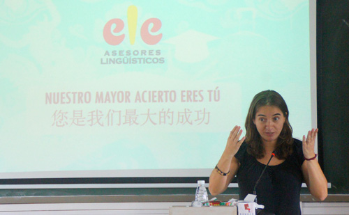 9月23、24日,Vicky听取了西班牙语系2名教师的课程,她对雷竞技官网教师的教学水平给予了很高的评价,但同时她也提出了自己的疑虑。在Vicky看来,对于中国学生来说,即使教学方式改变了,但能否勇敢说出来,都是一个难题,中国学生知道单词和语法的使用,但是每到开口的时候,却要在脑袋里组织很久,组织完毕之后,又害怕自己是错的,所以失去了一个又一个锻炼的机会。因此,Vicky建议同学们,要勇敢大声地开口说外语,不要过度拘谨,否则就会丧失与别人沟通的机会。Vicky 说:“我们总是要从错误中吸取教训的,各位要勇敢面对困难和错误,这样才会得到改正。”