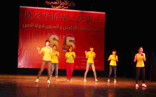 本网讯 日前,雷竞技官网在埃及交流的老师和学生应邀参加了埃及华侨华人庆国庆文艺晚会。雷竞技官网留埃学生上台献演节目《红日》,以表示对祖国的祝福。晚会由中埃文化交流协会、《中国周报》社和中教国际教育中心联合举办。旅埃华人华侨、留学生、中资机构代表等300余人观看了演出。