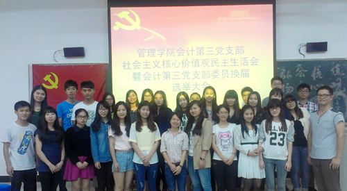 本网讯 近日,国际工商管理学院会计第三党支部在教学楼G103召开民主生活会学习“社会主义核心价值观”。