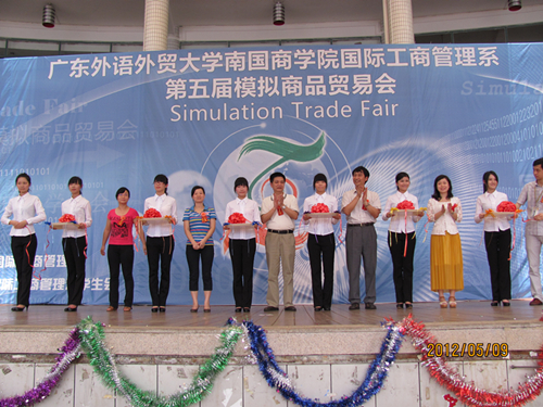 5月9日,国际工商管理系第五届模拟商品贸易会现场交易环节于在商业街舞台拉开序幕。学院国际合作与交流处处长梁小棋、学生处处长杨林、管理系党总支副书记邹艳平出席此次开幕式。
