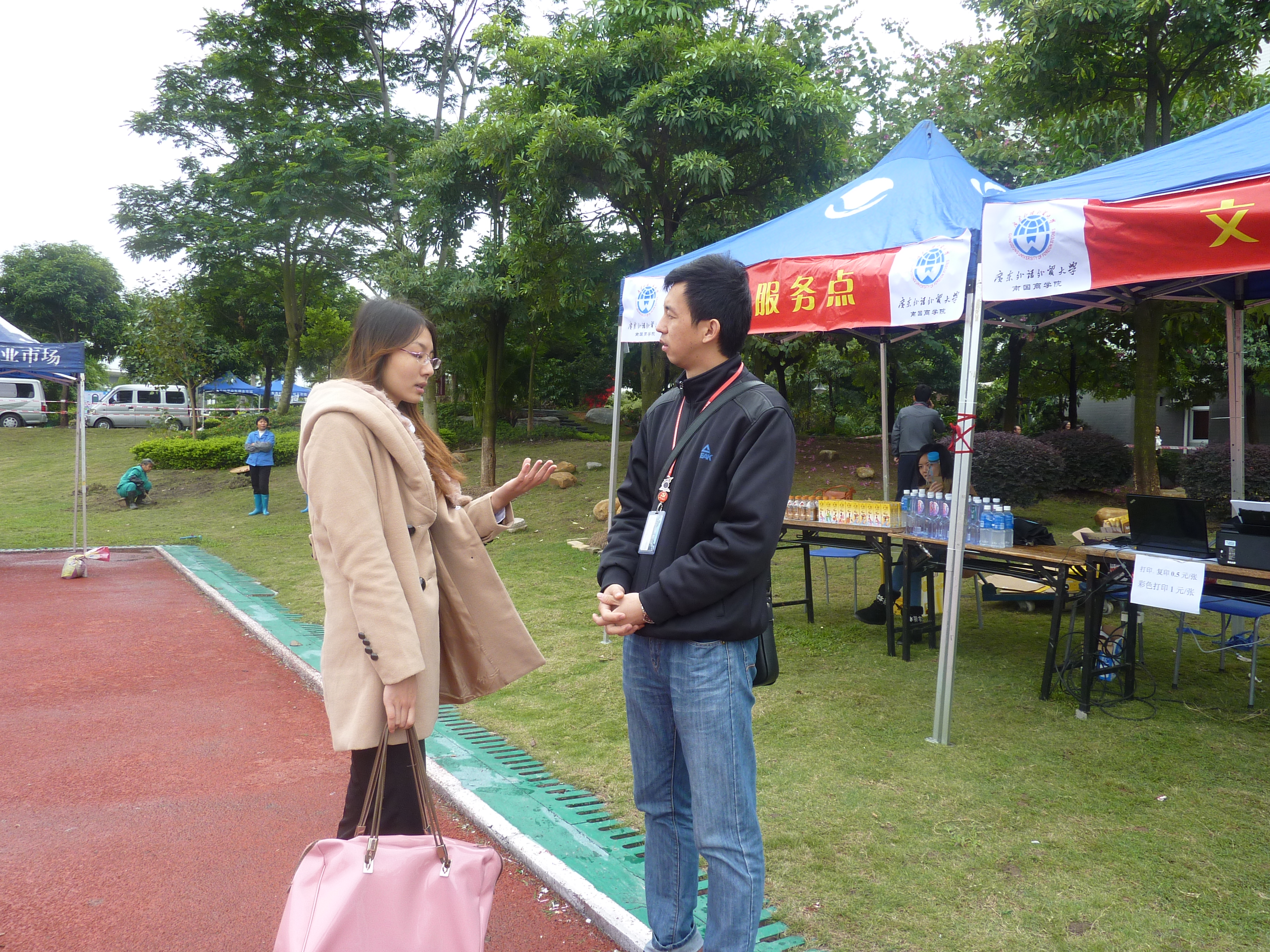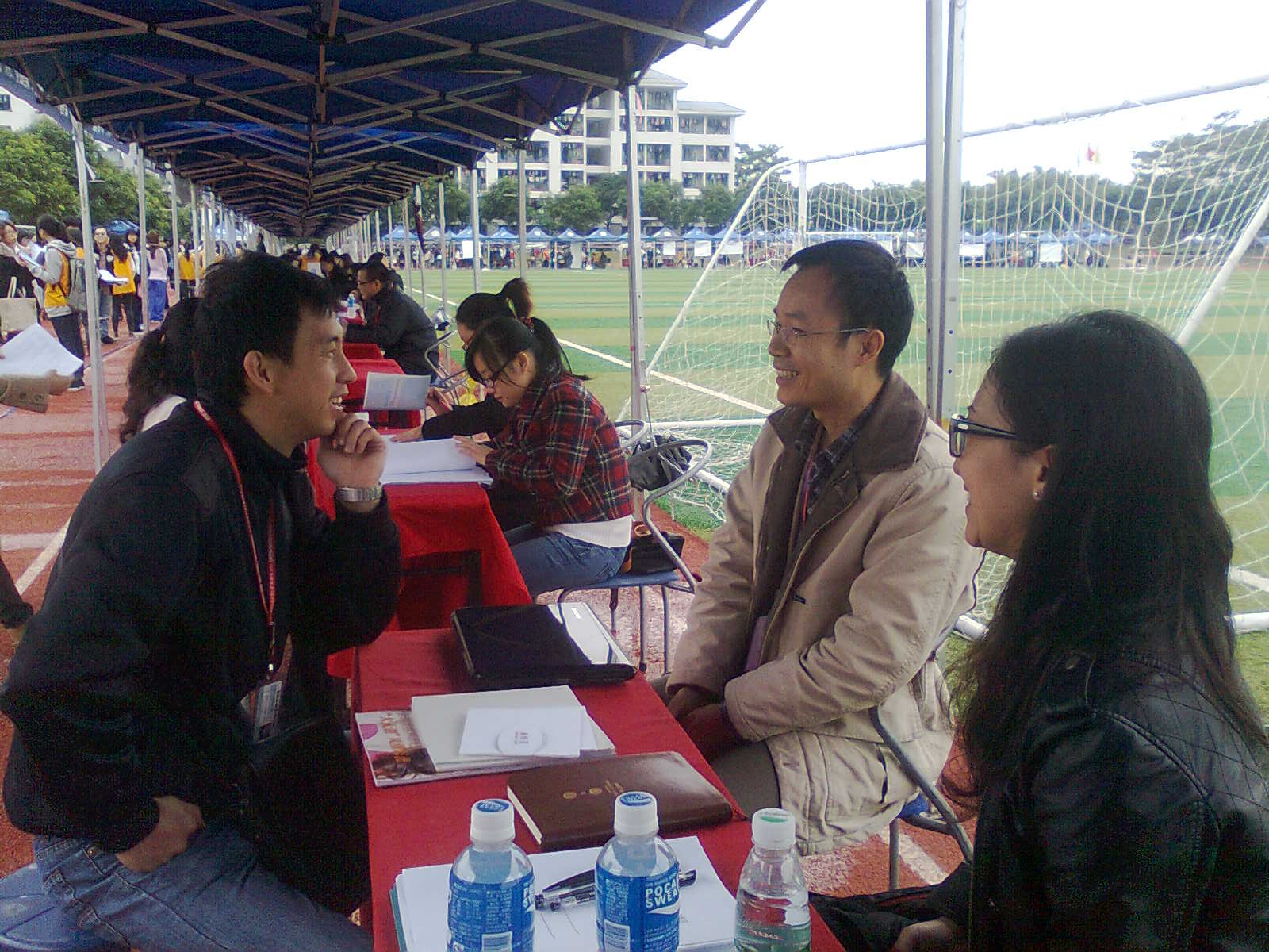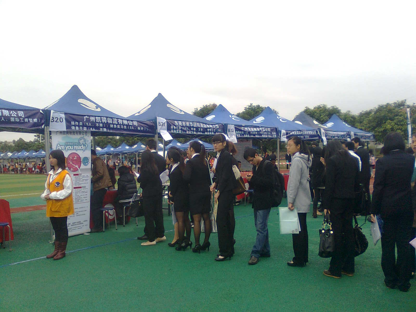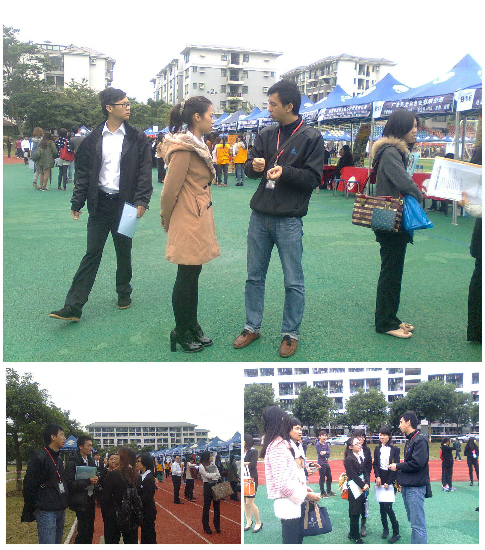本网讯 11月29日,广东省2013届毕业生供需见面会(从化专场)在我院田径运动场举行。此次招聘会大概有120家企业入驻,管理系党总支副书记王黎明,管理系辅导员陈国静、刘伟娴、刘淳媛、何思萍老师到招聘会现场视察和指导管理系毕业生求职。