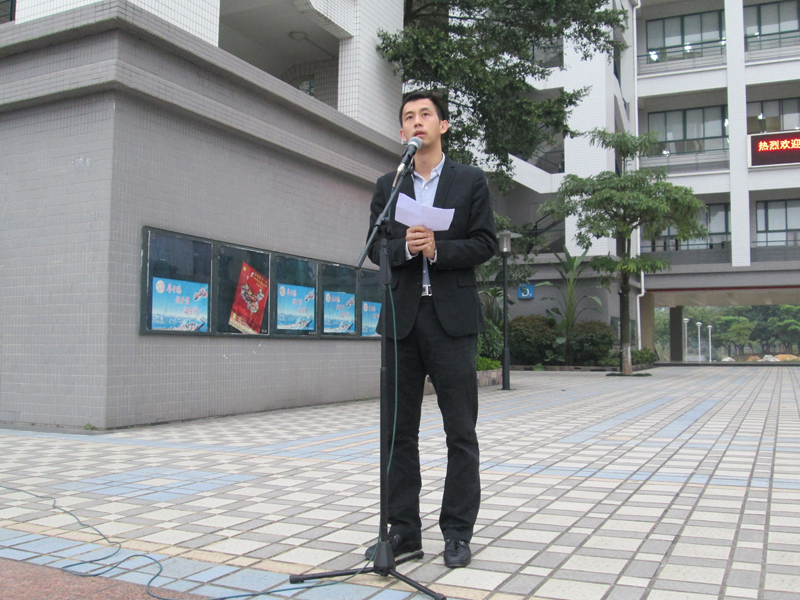 升旗仪式过后,党总支副书记王黎明发表讲话。针对学风考风方面,王黎明老师说明学院的新规定,第一,学院将取消毕业前的清考。其次,在考试过程中,凡是发现舞弊的情况,处以记过以上处分,情况严重者留校察看一年以上。同时,