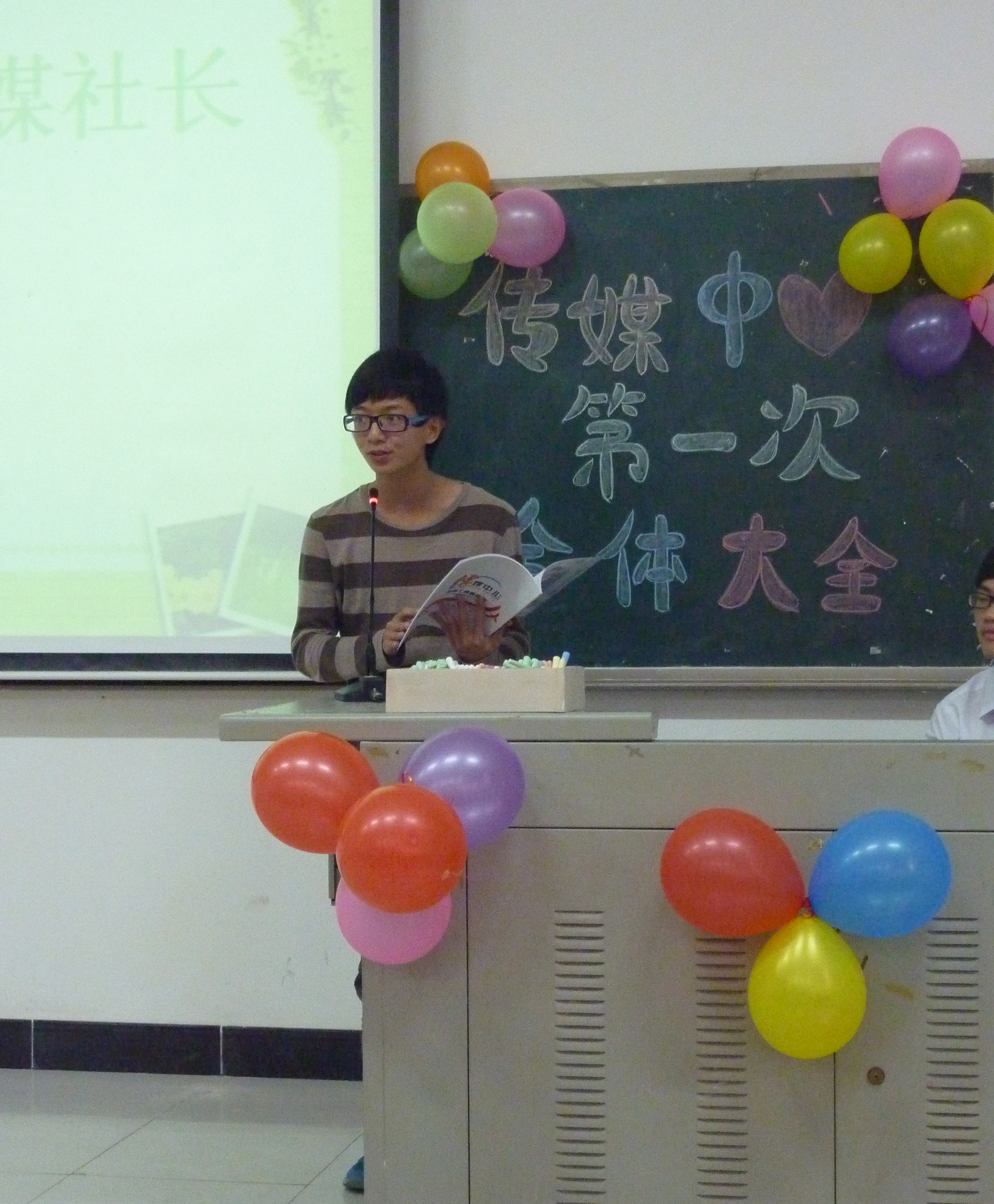 随后,英语系传媒社长张烁彬则用风趣幽默的语言指出《超越》系刊中的优缺点,并在会上与大家分享自己在英语系传媒中心的经历与所感所得,赢得大家的阵阵掌声。