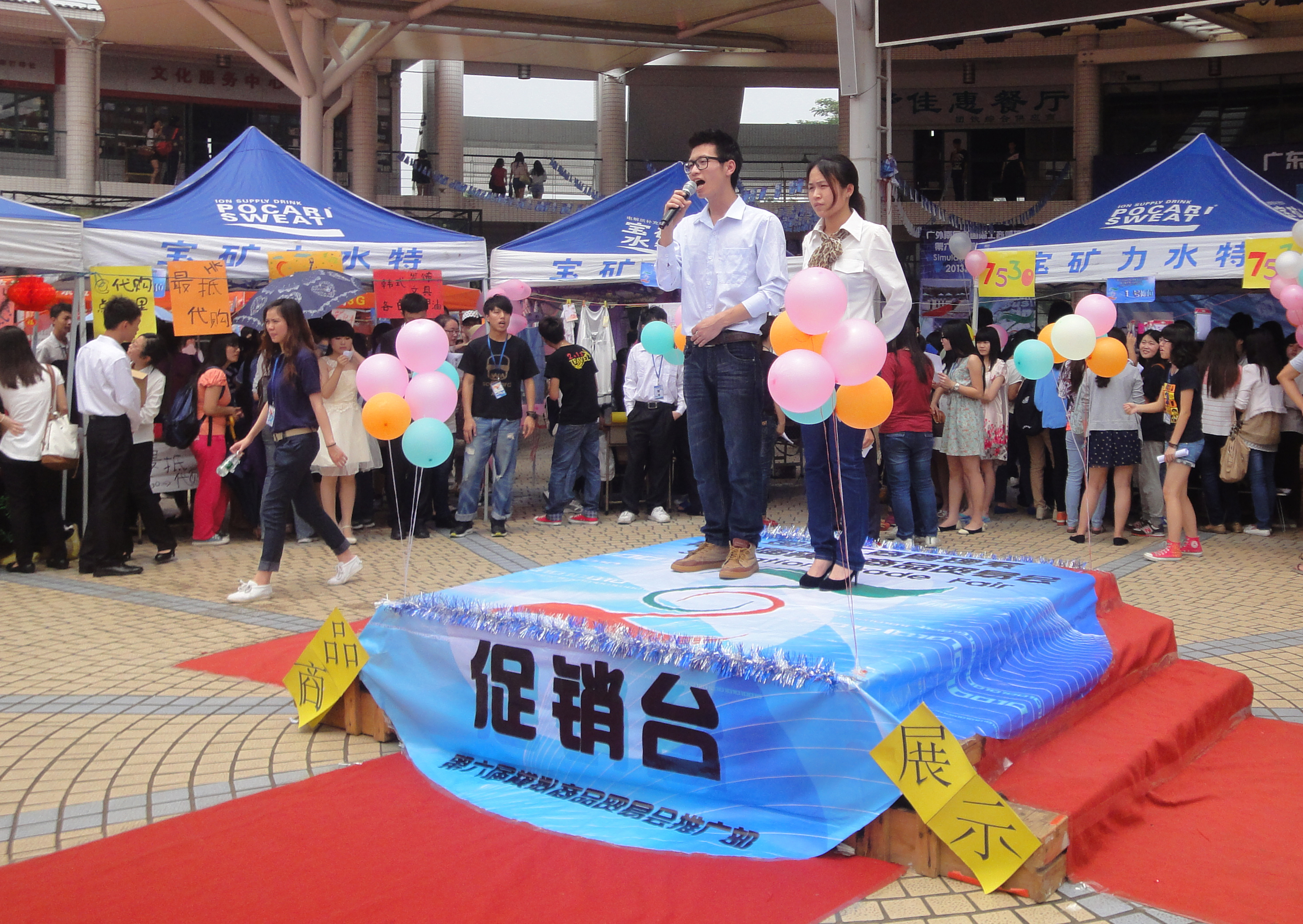此次现场交易吸引了来自各系两百余名不同语种(含中文、日语、德语、西班牙语等)的流动客商参与,以及12个模拟公司进行商品买卖,创下模商史上客商人数之最。客商进场后,即开始现场促销,管理系陈国静、温岚、刘梦文、何思萍、刘淳媛、刘伟娴和黄睿老师担任此次现场促销大赛评委。