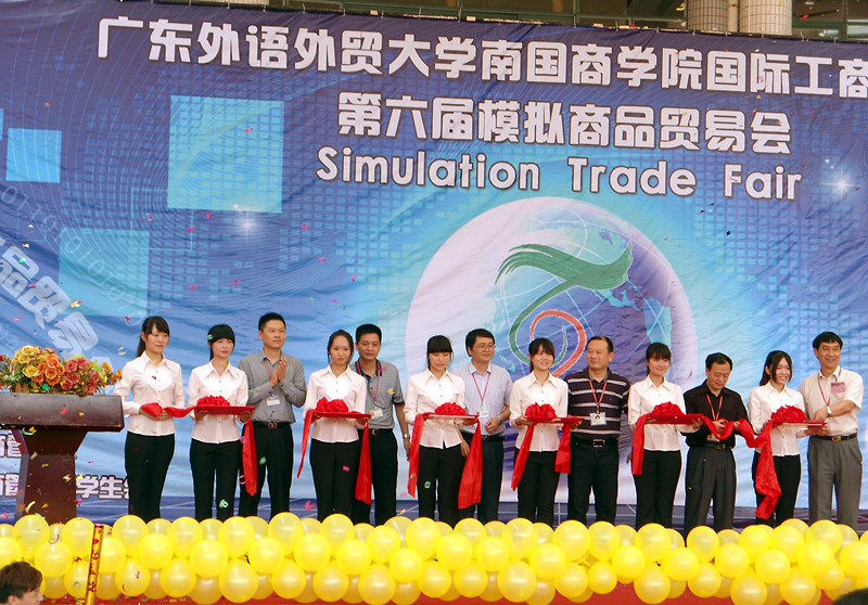 本网讯 4月25日,国际工商管理系第六届模拟商品贸易会现场交易在商业街拉开帷幕。党委书记黎冬、常务副校长袁长青、副校长熊匡汉、学生处处长杨林、学院团委副书记郭婷等学院领导,管理系主任助理陈书星、管理系全体辅导员出席了此次开幕式。常务副校长袁长青致大会开幕词,他提到,模商是南国的“广交会”,是同学们课外学习实践活动的良好平台,应鼓励并大力支持大家参与到这项活动中,提高我院学子管理经营等综合竞争力。