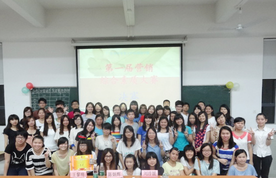 本网讯 近日,管理系第一届市场营销综合素质大赛决赛在G101成功举行,本次大赛由市场营销学会策划与组织,市场营销教研室给予全程专业指导。管理系主任陈炳辉教授、管理系党总支副书记王黎明、市场营销学会指导老师吴新玲老师、管理系辅导员刘淳媛老师出席比赛,比赛还邀请了2012级市场营销专业各班班委、管理系其它学会代表等作为嘉宾观战。