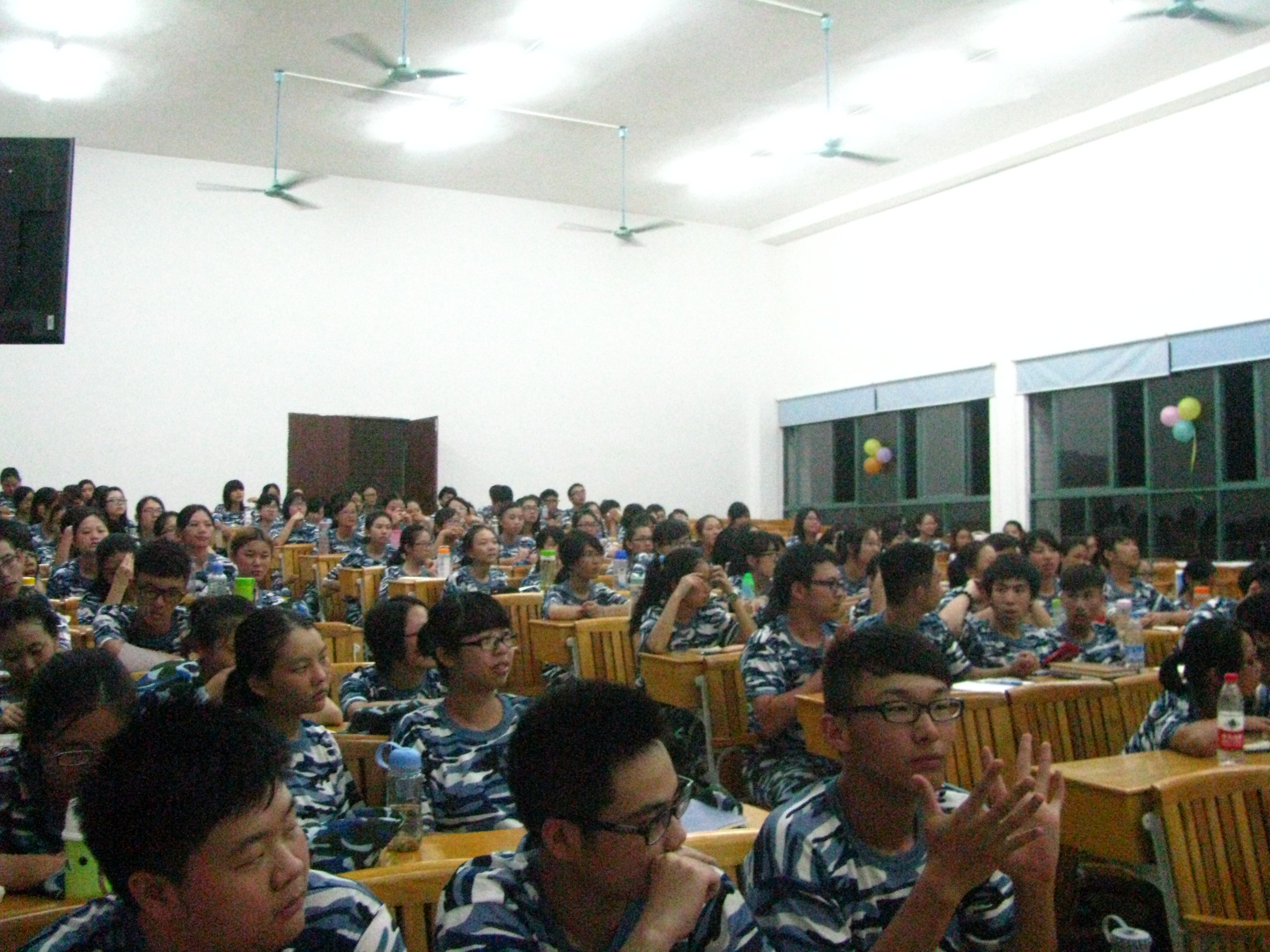 活动的现场,新生们以一袭军绿色的服装现身,如同一股清风般,给会场带来了不少清新的气息。在主持人介绍完本系情况后,新生们或目不转睛地看着讲台,或小声议论,似乎在对即将能了解更多关于自身所学专业的情况充满了期待。