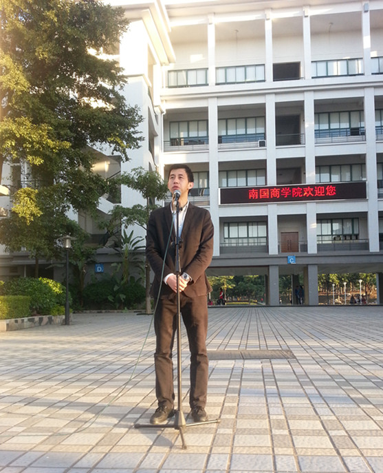 寒冷的清晨没有阻挡师生们参加升旗仪式的热情,大家都按时到达。七点半整,鲜艳的五星红旗在雄壮的国歌声中冉冉升起。紧接着,管理系党总支副书记王黎明发表讲话,今天的升旗仪式和大四毕业生拍毕业照是同一天,他希望全体同学能好好珍惜在南国里学习的日子,珍惜与舍友、同学一起学习生活的时光,认真学习,努力提升自己的实力,实现自己当初的大学梦想,让自己有个无悔的大学生活。此外,他还再次强调了考试的规范和纪律,并给全体同学提前送上新年祝福。