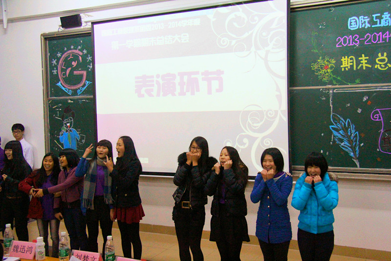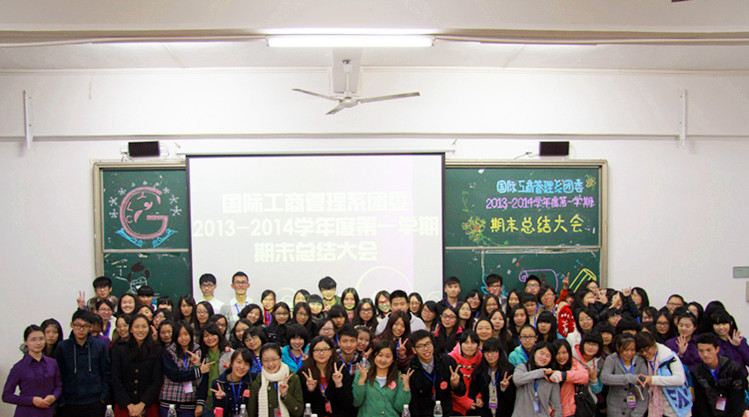 本网讯 为总结本学期的各项工作,完善不足之处, 12月19日晚,国际工商管理系团委于教学楼C302召开了2013—2014学年上学期期末总结大会。管理系团委书记刘梦文,副书记魏迅鸿、吴铭茵,副书记助理游思雅和邱可莹,以及管理系团委各部长及干事均参加了此次大会。