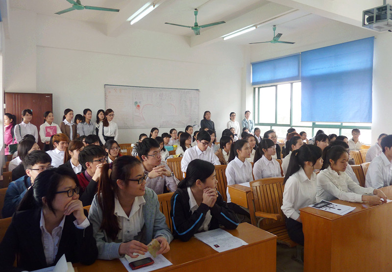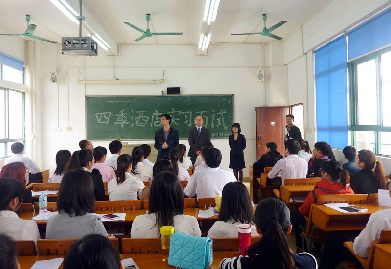 首先,在国际工商管理系党总支副书记王黎明和旅游教研室主任陈书星老师的介绍下,两位面试官与面试同学见面,在座学子以热烈的掌声对他们表示欢迎。随后,四季酒店人力资源总监潘先生给大家介绍了四季酒店的基本情况,包括酒店的硬件设施,服务运作等。他还特别指出四季酒店的黄金准则:待人如己,强调服务是围绕人这个主体来进行的,服务他人时应该如同考虑自己的事情一样仔细周到,时刻牢记为顾客提供最优质的服务。