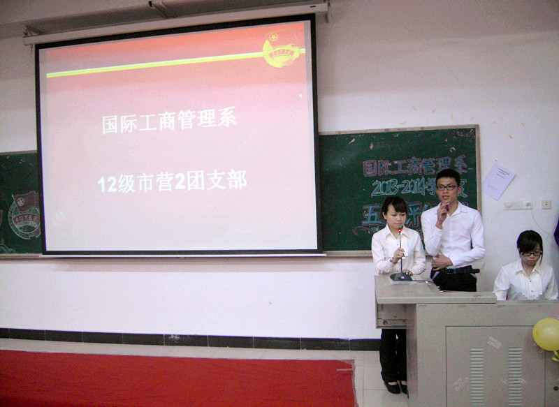 本网讯 为了深入推进全校共青团系统创先争优活动的开展,进一步继承和发扬“五四”精神,4月10日晚,国际工商管理系团委在G107举行2013-2014学年度先进及红旗团支部评选大会。担任本次大会的评委有管理系团委书记刘梦文,管理系辅导员刘淳媛、刘伟娴、张小玲、何思萍、温岚、黄睿、陈国静。
