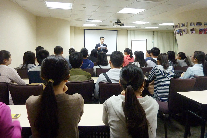 在宴会厅里,聚集了来自于8个不同学校的学生。同学们在填完个人资料表后,观看了酒店的内部结构介绍和员工分享心得的视频。随后,同学们轮流上台做自我介绍,互相认识。