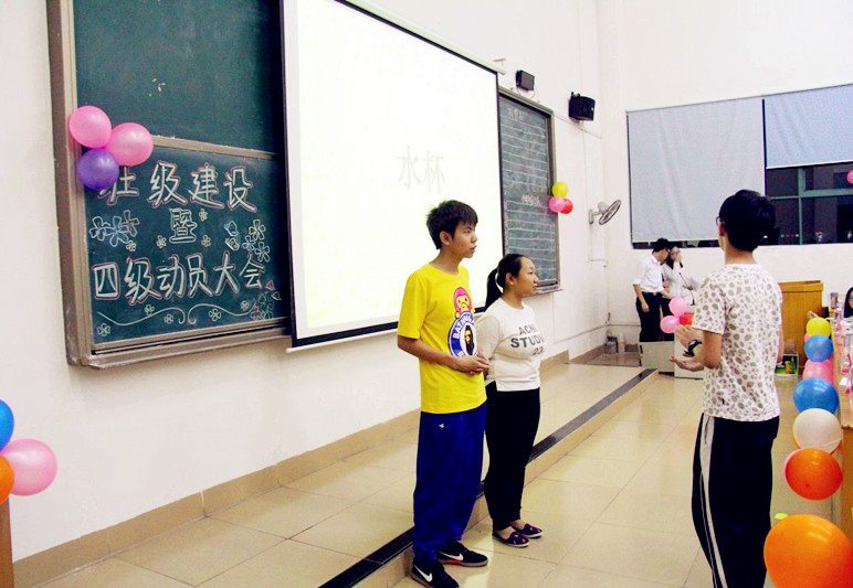 本网讯 5月20日,国际工商管理系13级管理专业七个班及13国际会计创新班在C501联合举办以“分享成长经验,共促班级建设”为主题的班级建级设交流大会暨CET4考前动员大会,出席本次班会的有辅导员陈国静老师、各班导生以及13级管理专业七个班及13国际会计创新班全体学生。