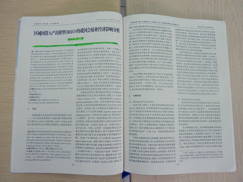 本网讯 近日,国际工商管理学院李铁成老师在《旅游学刊》2014年第6期发表论文“区域间投入产出模型(IRIO)的我国会展业经济影响分析”。该论文首次将区域间投入产出模型(IRIO)应用于会展研究中,得到了该模型的研制者——中国科学院虚拟经济与数据科学研究中心的高度称赞,认为这一成果开拓了IRIO模型在服务业领域里的应用,未来有很大的拓展空间,并承诺提供最新版本的IRIO模型供今后进行跟踪研究。