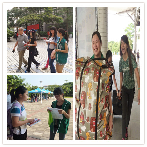 除了三大组织的工作人员外,管理学院学生志愿者也是踊跃参与到为新生服务的行列当中。在新生完成注册工作后,他们带领新生到教学楼C栋1楼下,领取学生卡、热水卡,购买意外保险,帮助新生搬运行李去宿舍楼,带领新生去商业街舞台领取军训物资等。