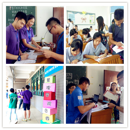 为了让学生家长更清楚地了解新生报到的相关事宜,学校在E栋张贴新生报到流程图、学校地图等告示。管理学院三大组织更是提前就精心布置新生报到点,在负责迎新注册等工作时贴心周到、热情服务,力求让新生感受学院组织的文化,表达他们对大一新生到来的喜悦之情。