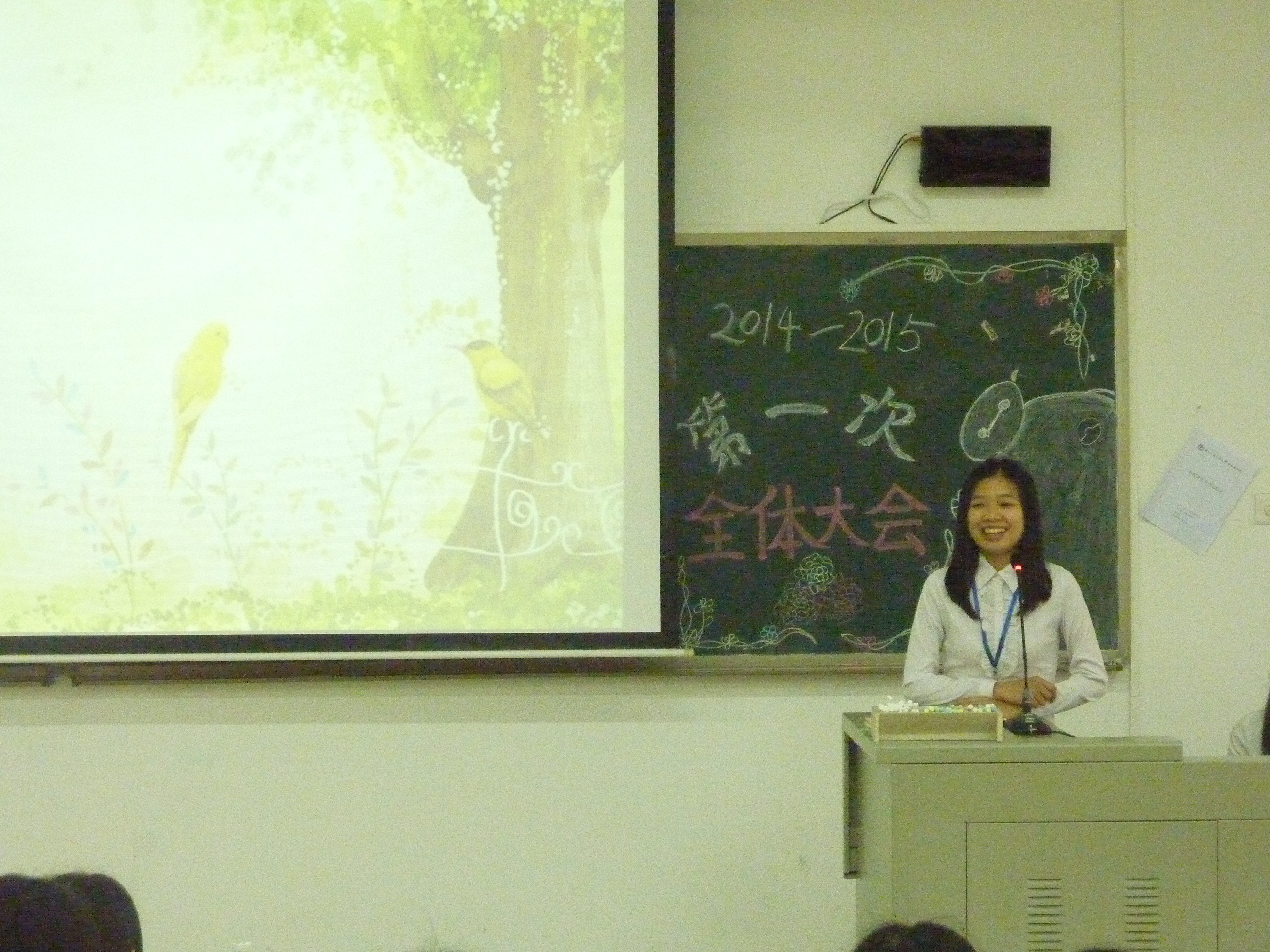 会议以一段温馨感人的回顾视频拉开序幕.接着,传媒中心主席凌茜上台发言,她提出了传媒中心本学期的发展方向,希望中心成员要有敬业创新精神,尽最大的努力把传媒中心做大做强。最后,她还隆重宣布传媒中心外联部正式成立。