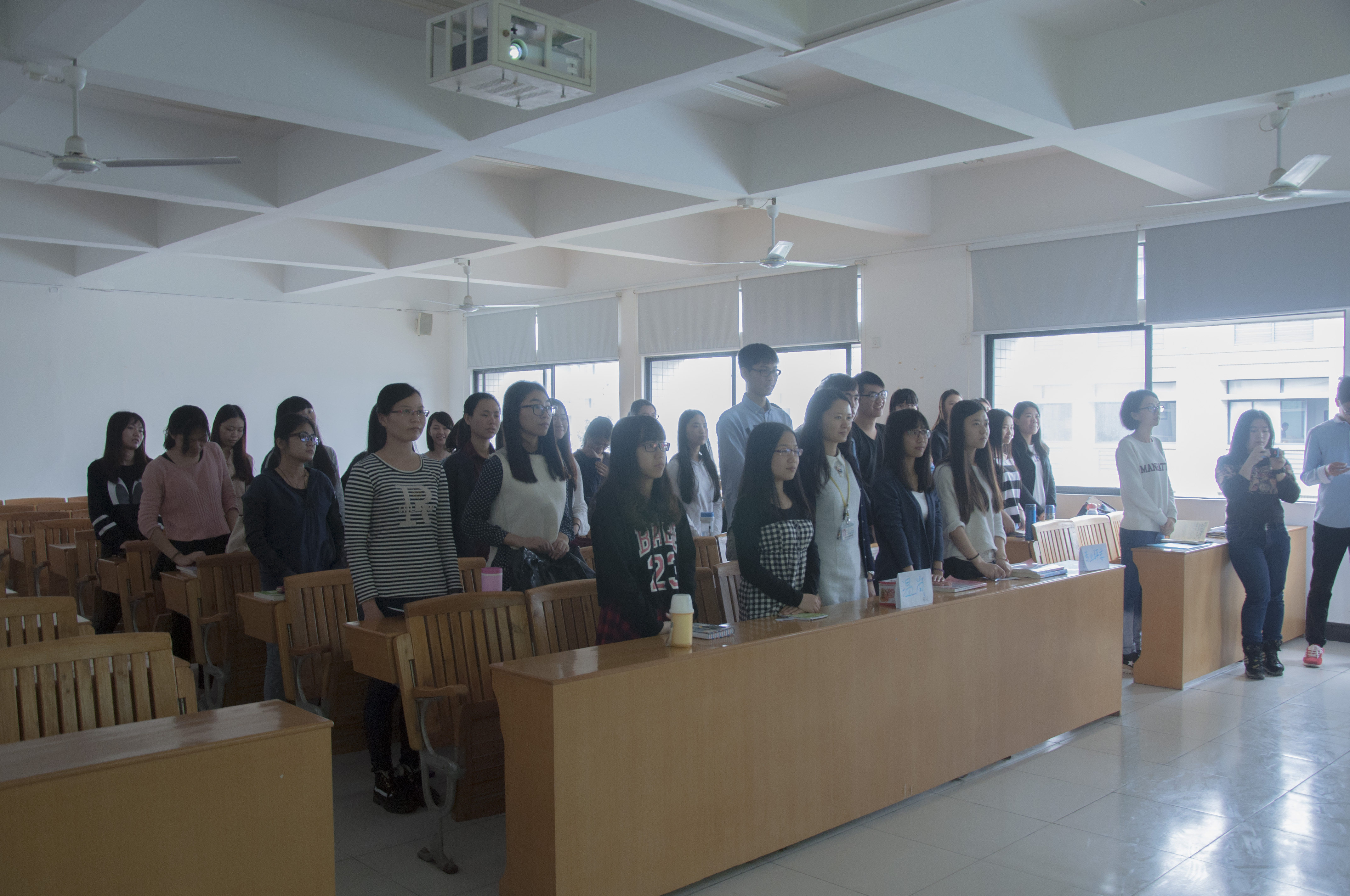 活动开始前,全体师生起立奏唱《共青团团歌》,在嘹亮的歌声中我们能感受到在这个社会和国家中,青年人应该肩负的责任和义务,同时营造了一种和谐团结的气氛,使大家更快地融入到活动中。