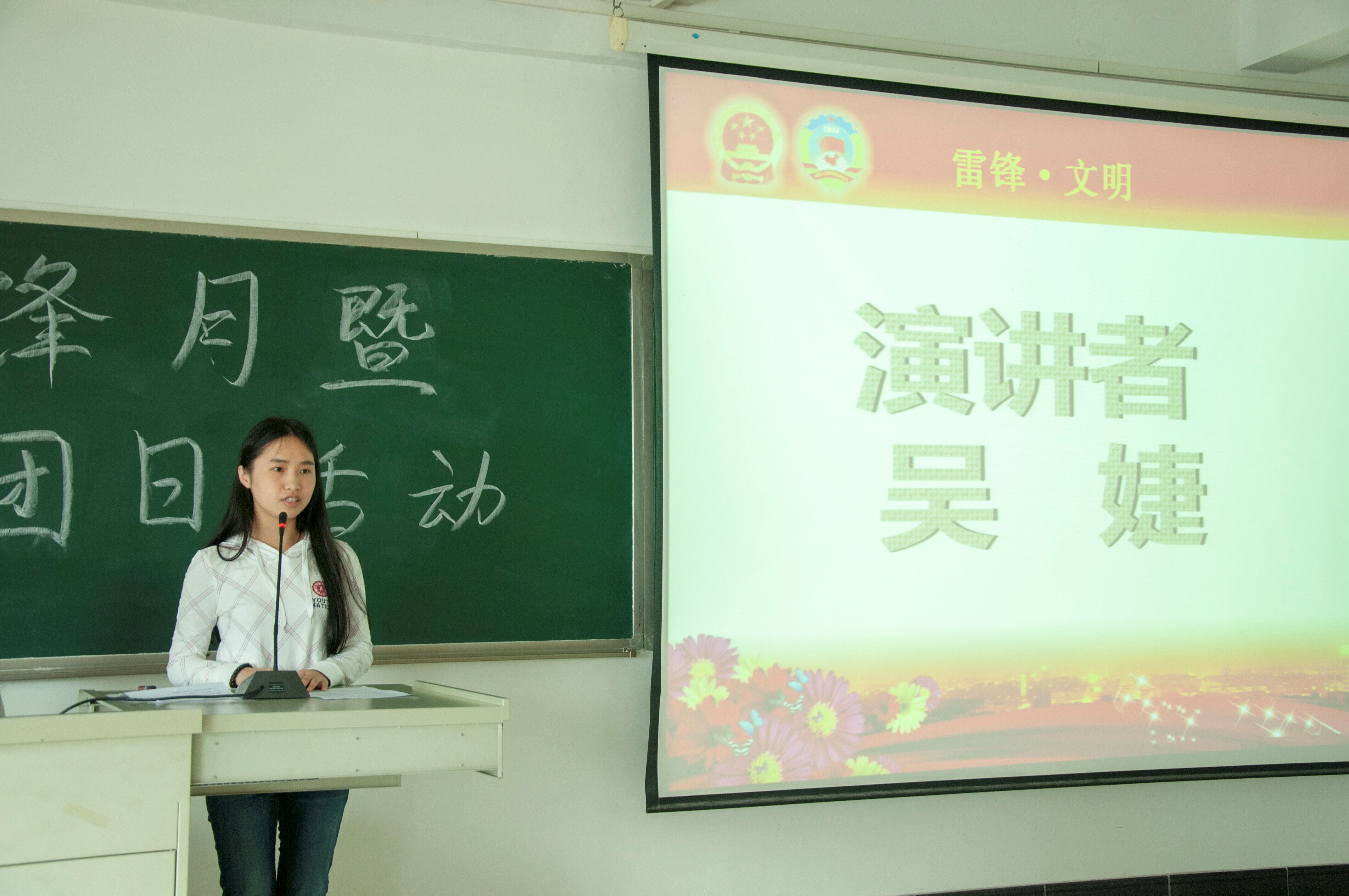活动的第一个环节是关于“雷锋精神”的演讲,班级中三位各有特长的演讲同学声情并茂地向我们表达了,雷锋精神是一种艰苦奋斗、积极向上的精神;是一种“爱憎分明不忘本”,具有坚定意志和昂扬斗志的精神;是一种忠于人民忠于党的精神;是一种对人民充满友爱、互相帮助的精神;是一种公而忘私、全心全意为人民服务的精神。作为新时代的青年,我们有责任有义务去传播和弘扬优秀的雷锋精神,让社会充满爱。