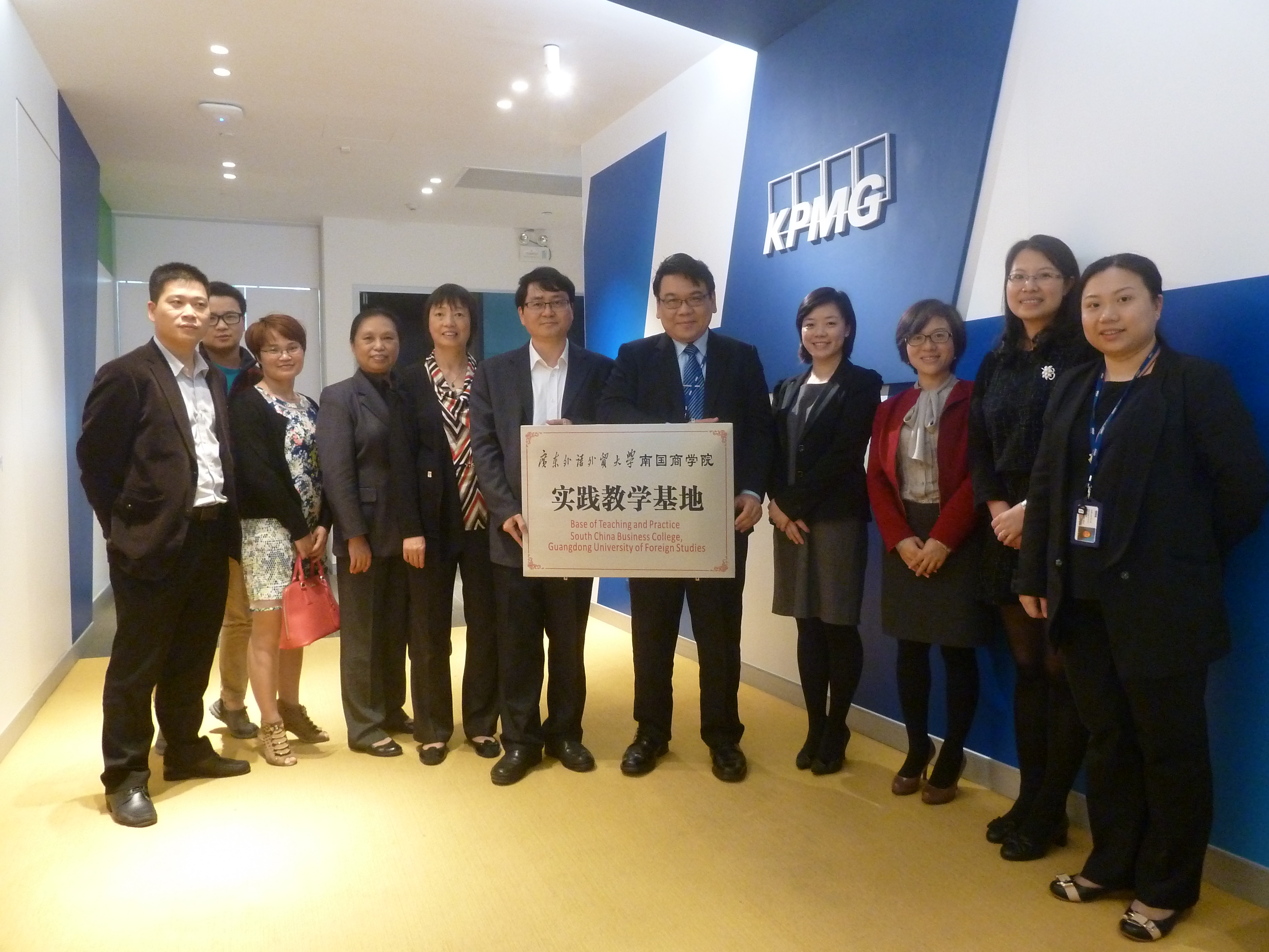 本网讯 为加强学校与知名企业的合作,更好的为学生提供高质量的实习就业平台。3月19日上午,在袁长青常务副校长带领下,国际工商管理学院院长翟晓燕、副院长张玉明、党总支副书记卢少勇、会计学系主任文佑云和教务处实践教学科科长周平锋一行六人前往毕马威全球商务服务(广东)有限公司参观调研。