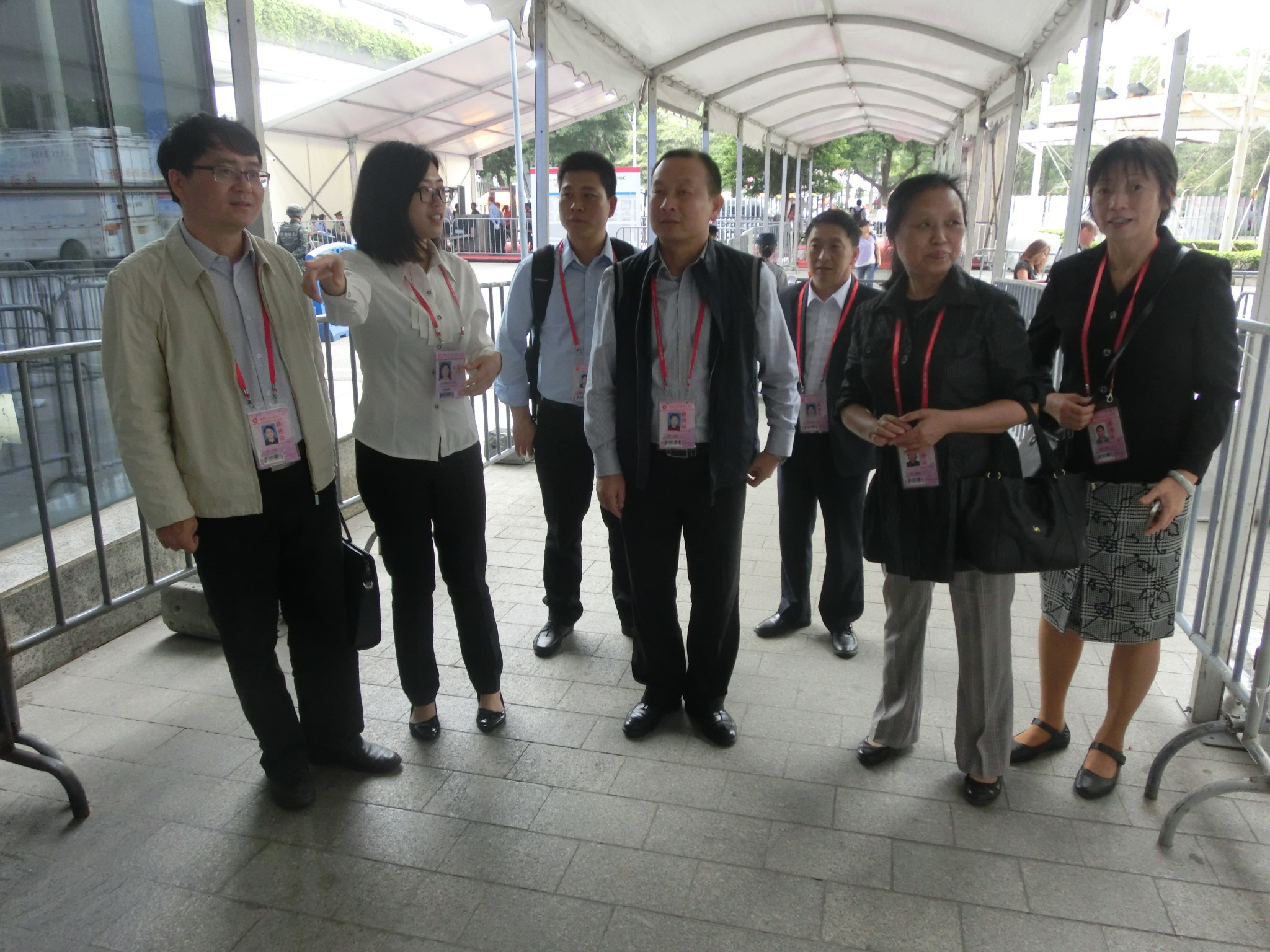 本届广交会,雷竞技官网共有160名学生到展馆实习,主要负责办证服务工作。在探访当天,黎冬一行首先来到广交会展馆的C展馆。C展馆区实习生组长欧嘉烨跟大家分享她的心得,她说:“在咨询导向组工作我学到了很多,不仅锻炼了我的英语口语能力,也磨练了我的意志,提升了我的临场应变能力。虽然每天需要站立七个小时以上,但这是值得的,感谢学校学院领导给予我们这次难能可贵的实习机会。”