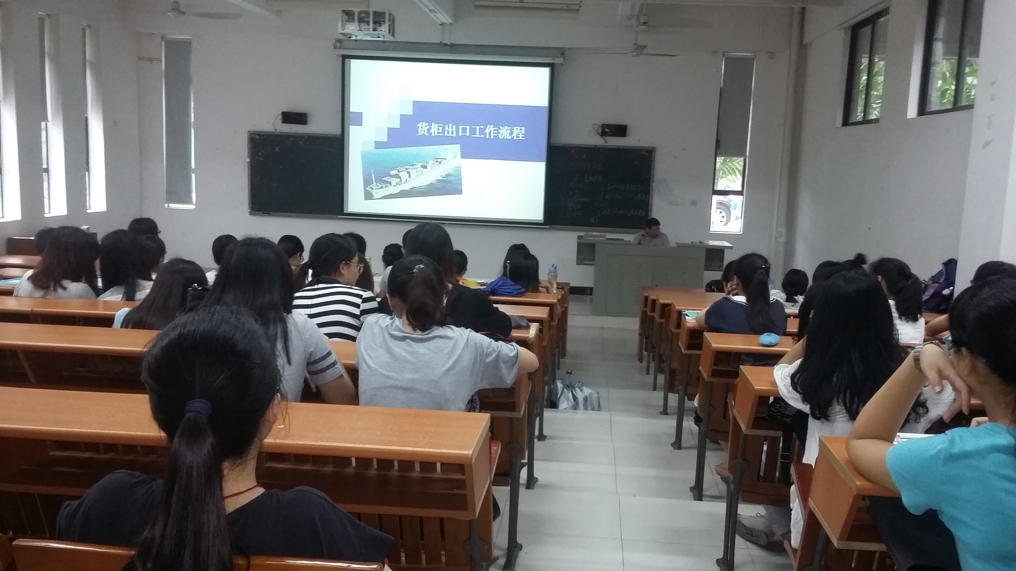 本网讯 2015年5月7日,由管理学院组织的《集装箱运输与风险控制》讲座顺利举行,这是雷竞技官网省大学生实践教学基地举办的系列讲座之一。广州市国营汽车集装箱运输公司张毅华经理担任此次讲座的主讲嘉宾,有近60位学生及教师代表参加了此次讲座。