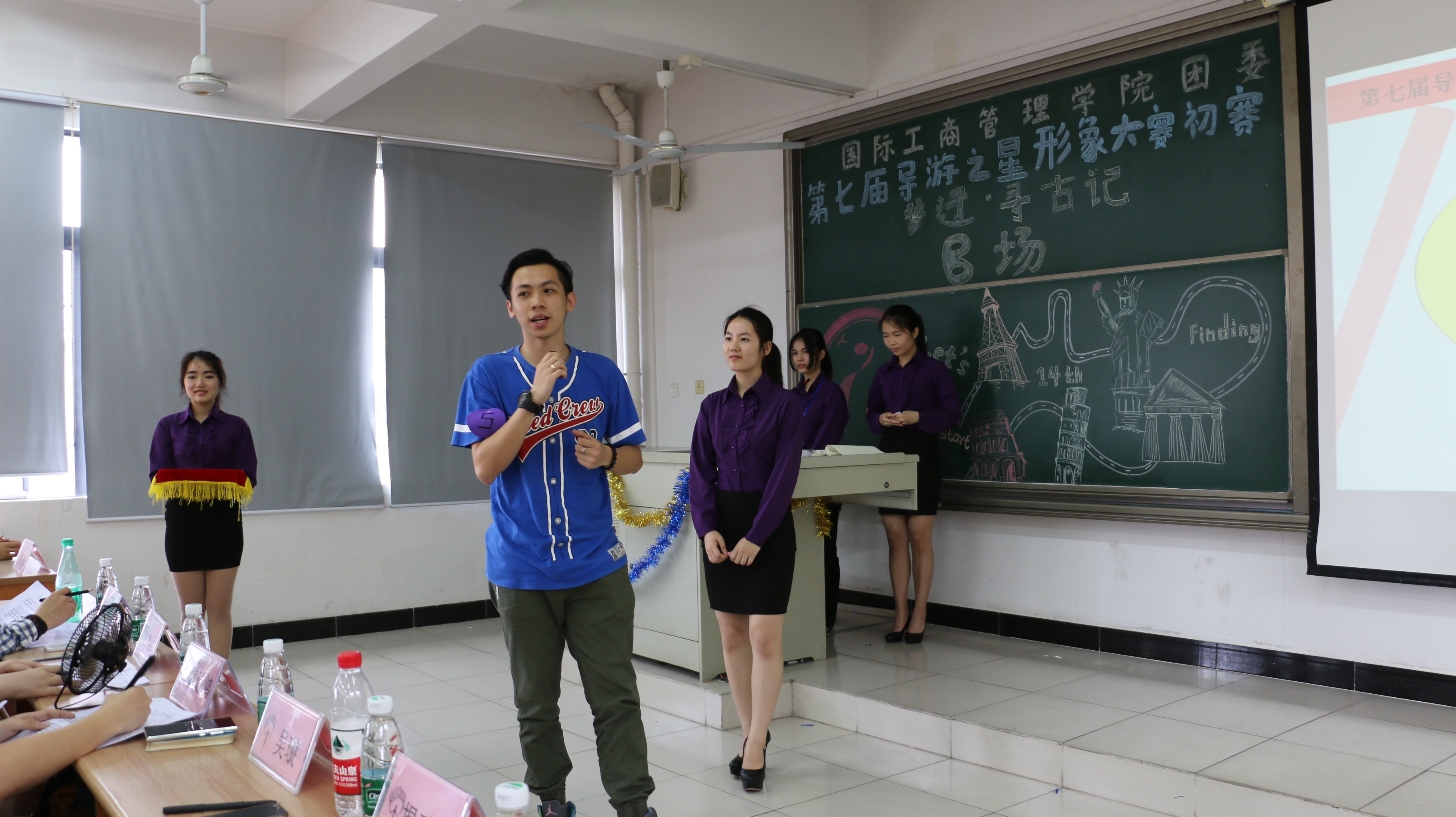 本网讯 为了体现我院旅游管理专业特色,加强本校学生专业技能,5月6日、7日,国际工商管理学院团委第七届导游之星形象大赛初赛分三个场次,分别在G106、G501、G107隆重举行。管理学院团委书记刘梦文,管理学院辅导员魏迅鸿,旅游管理专业老师尹俐,校学生团委、中文系团总支、管理学院团委副书记吴璇、柯舒云、马依迪,校学生团委书记助理苏淑婷,管理学院团委前任副书记助理游思雅、邱可莹,多名第六届导游之星优秀选手以及旅游管理专业优秀学生代表出席并且担任了本届初赛的嘉宾评委。