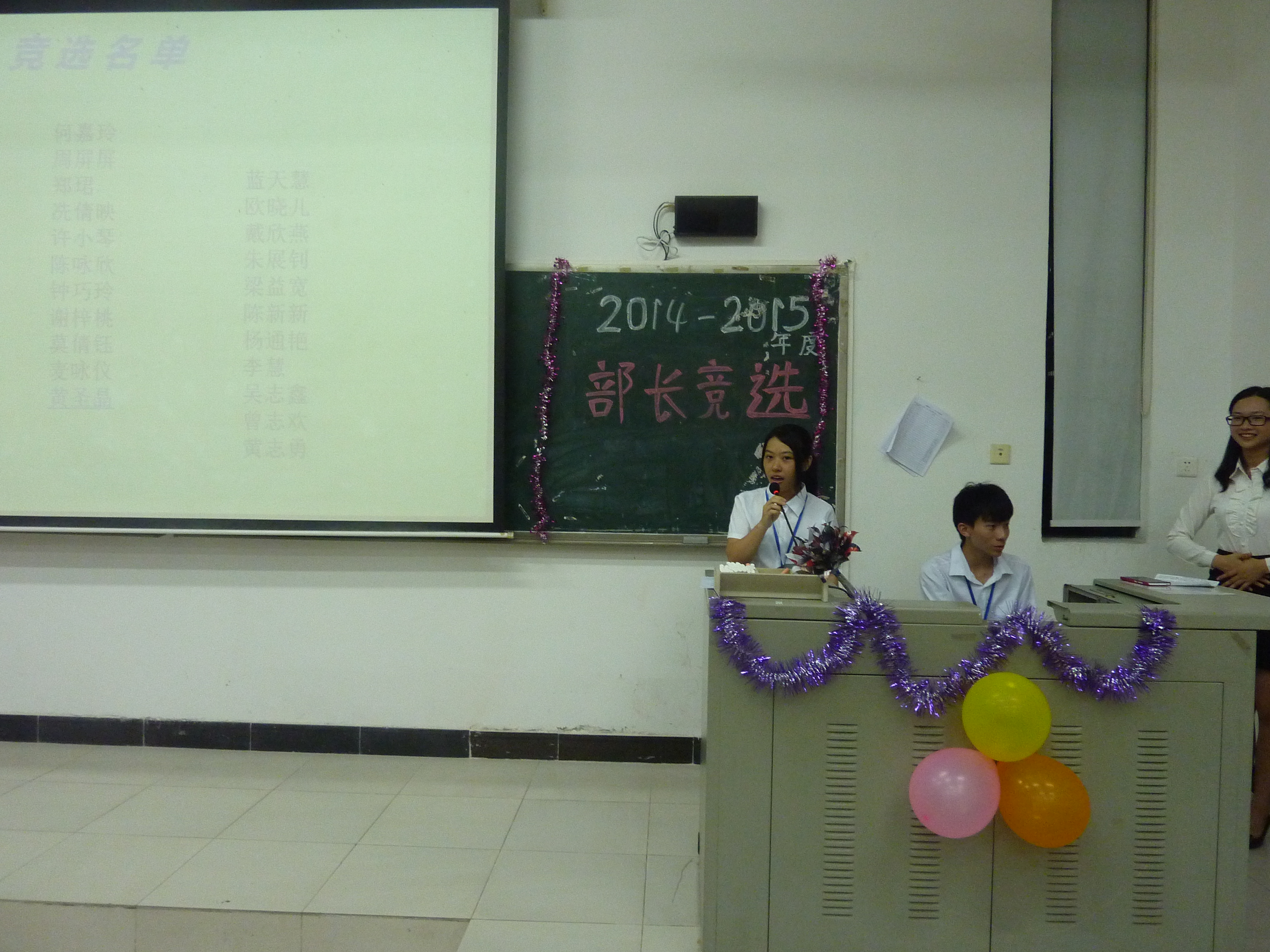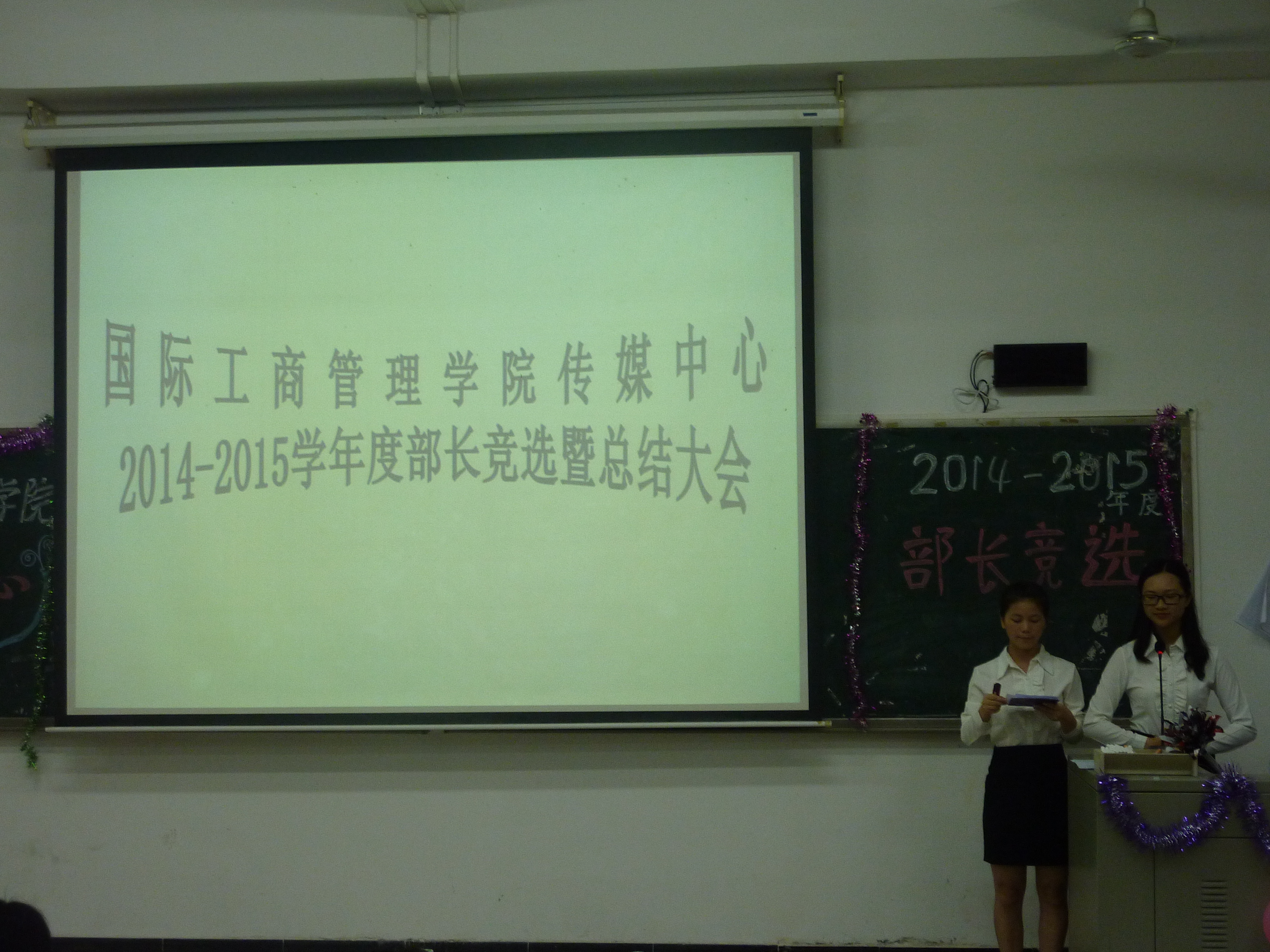 本网讯 为保障管理学院传媒中心工作的连续性,充分发挥传媒中心自主职能,起到“以旧带新,以经验带新”的作用,培养一批新学生干部,6月18日晚上7点,国际工商管理学院传媒中心在G101举行了部长竞选暨总结大会。出席本次大会的人员有传媒中心主席凌茜、主席助理张莼和林绮璇以及传媒中心全体成员。