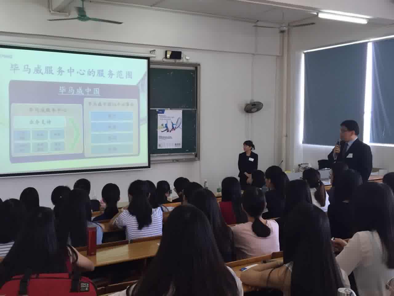 本网讯 10月8日下午, 毕马威全球商务服务(广东)有限公司毕马威(KDC)实习生招聘宣讲会在C401教室举行,管理学院党总支副书记卢少勇、会计学系主任刘娜、实践教学中心主任肖菁和辅导员温岚老师出席了本次宣讲会。