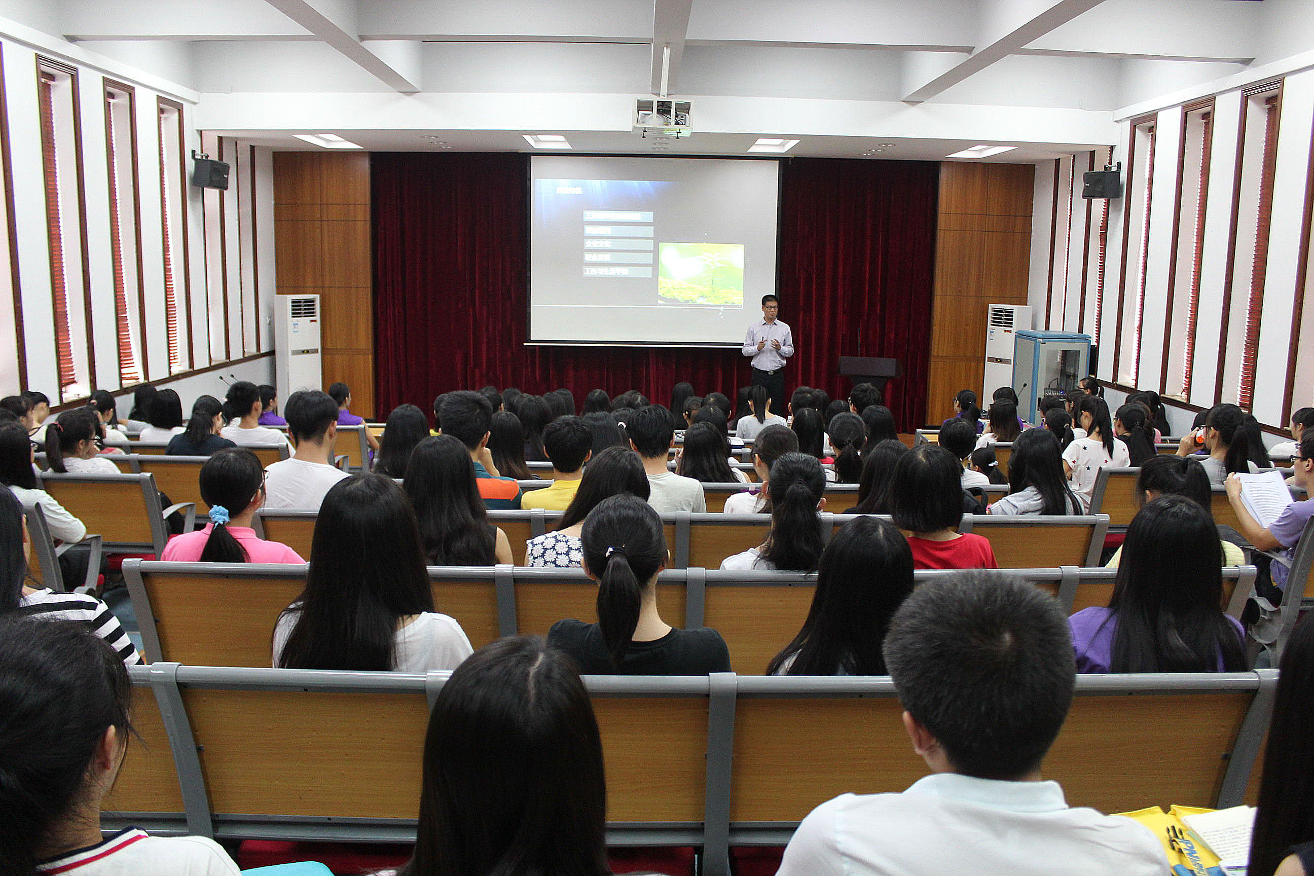 本网讯 10月29日下午,国际工商管理学院团委举办的“90后论坛”专题讲座——“90后,赢在职场”在学术报告厅F101顺利举办。我院团委特邀具有丰富高层管理经验的广州市政协委员王红刚作为本次讲座的讲师。同时,国际工商管理学院市场营销专业老师杨媛媛、国际工商管理学院团委书记刘梦文莅临了本次讲座。