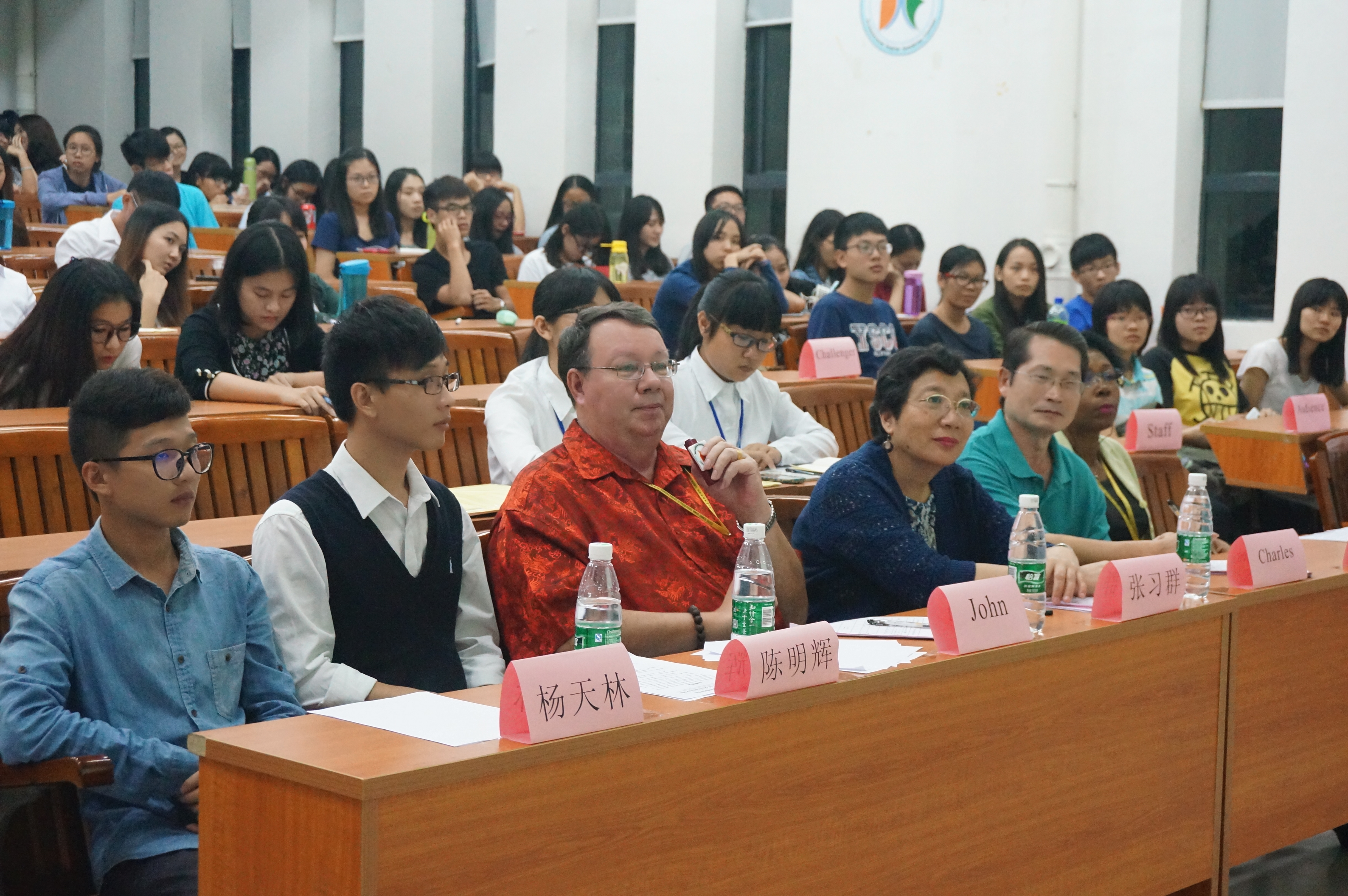 本网讯 国际工商管理学院第八届专业英语演讲大赛之黑白争夺赛于2015年11月24日19:00在G107成功举行,外教Mr. Charlie,Miss rose,Mr.John和Miss Zhang 作为评委受邀参加,上届优秀选手陈明辉师兄和杨天林师兄作为嘉宾出席了此次大赛。