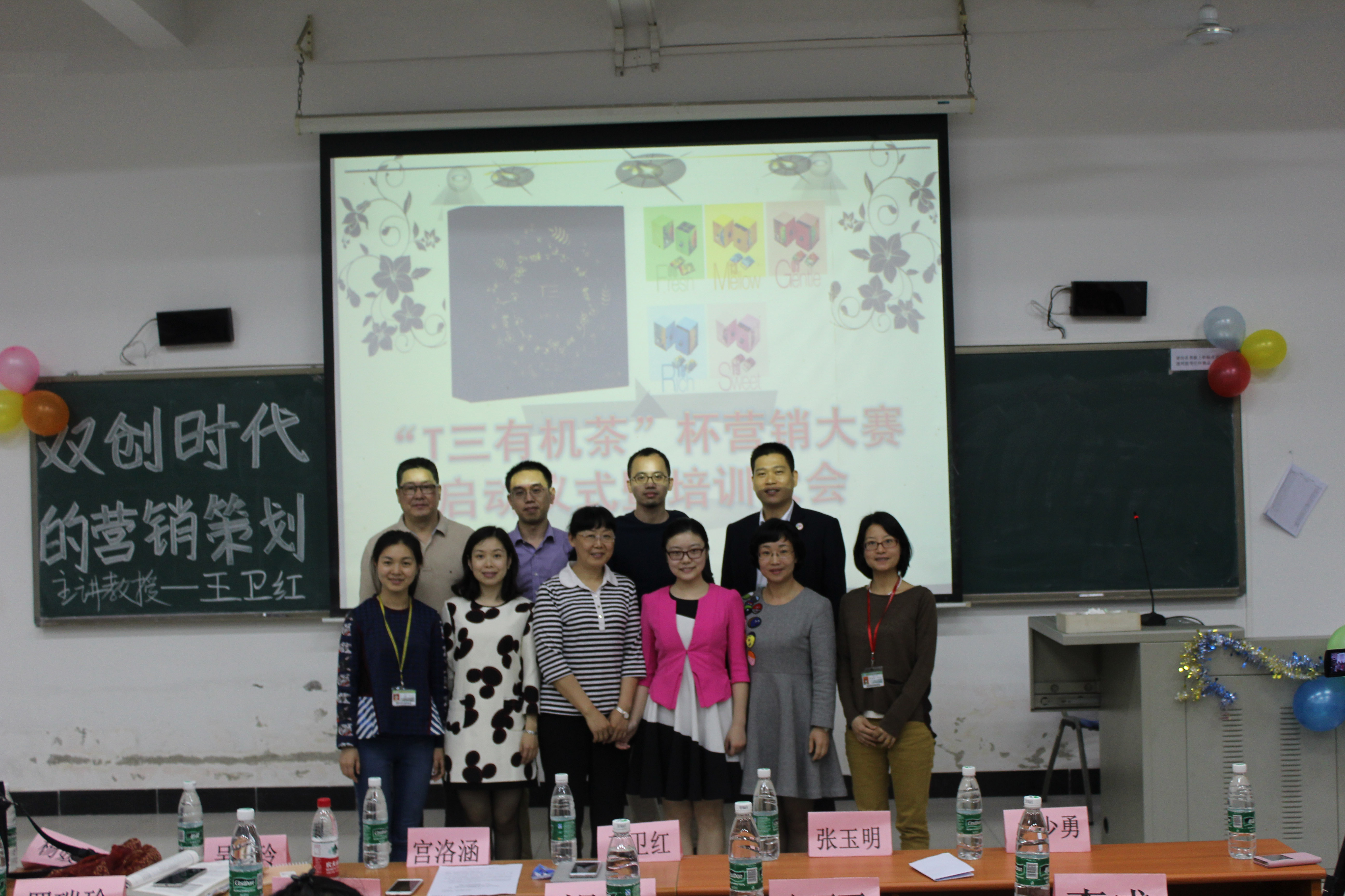 本网讯 近日,国际工商管理学院市场营销系在G103举办“T三有机茶”营销策划大赛启动仪式暨 “双创时代的营销策划”讲座。国际工商管理学院院长张玉明、学院党总支副书记卢少勇、市场营销专业负责人王卫红教授,市场营销系欧阳卓飞、杨媛媛教师及T三有机茶企业代表宫洛涵出席本次会议。活动由市场营销系主任吴新玲主持。