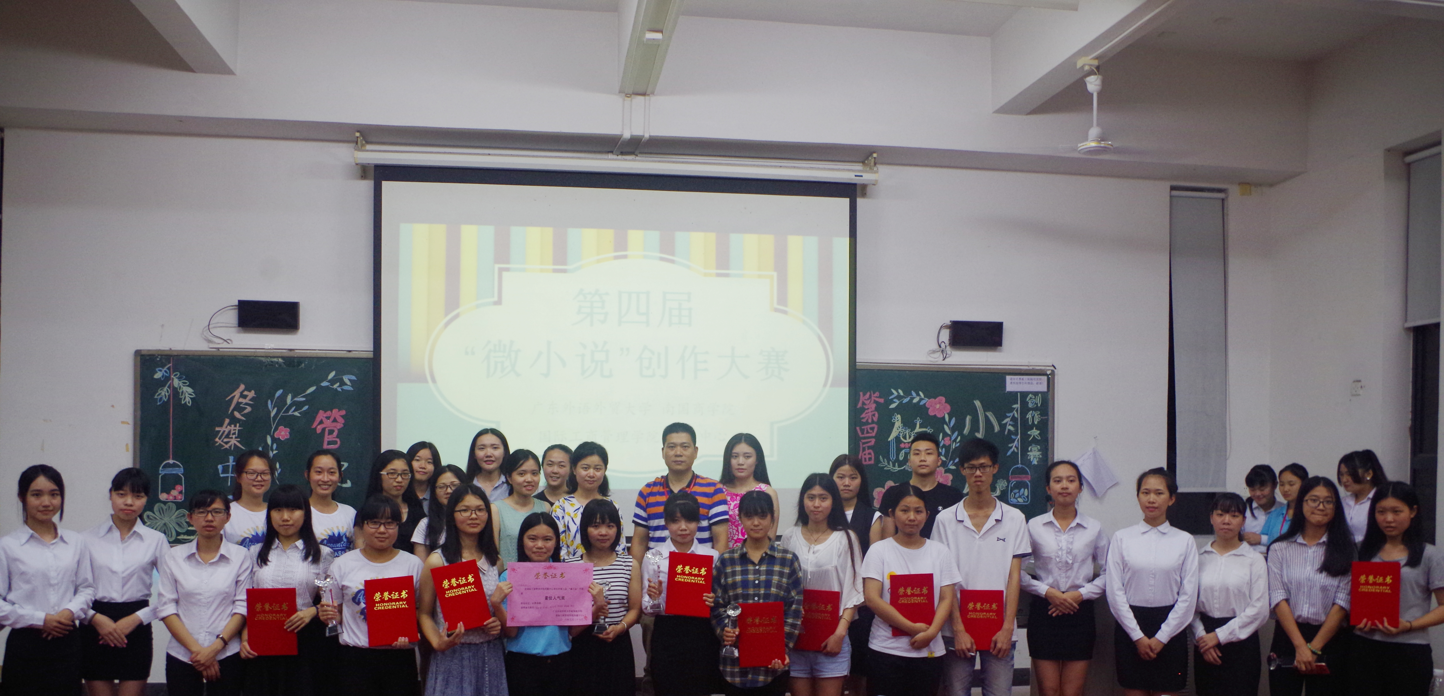 本网讯 2016年5月26日,管理学院传媒中心第四届微小说大赛决赛在D101举行。除了十组晋级选手外,出席嘉宾有党委副书记卢少勇、管院教学秘书王松艳、管院传媒中心指导老师郭丹、管院传媒中心主席林绮璇,以及黄奕璇师姐、区敏光师兄等。