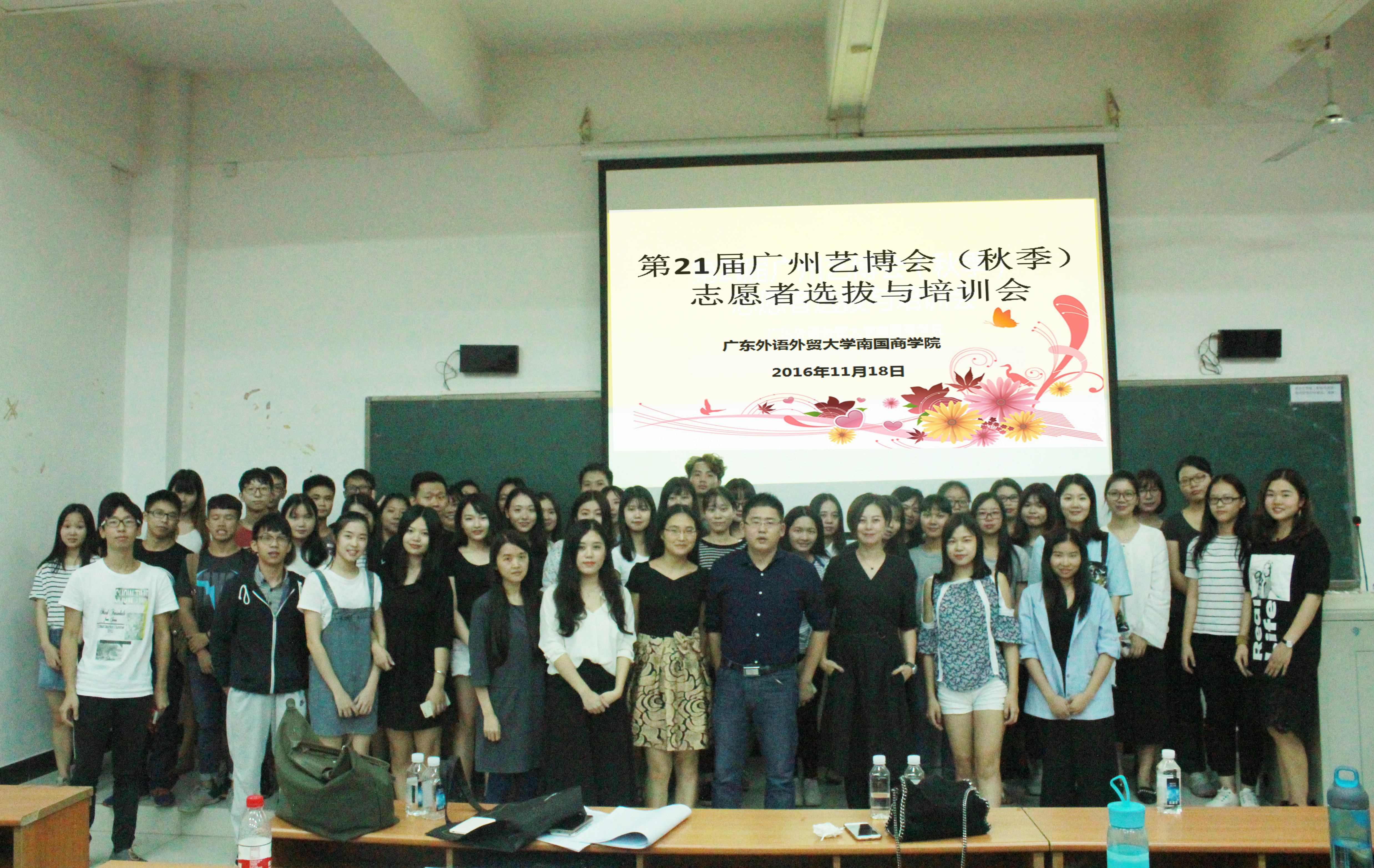 11月18日,在雷竞技官网G106教室,举行了第21届广州艺博会(秋季)志愿者选拔与培训会。参加此次艺博会志愿服务的同学以14级会展专业为主,包括少量管理学院旅游管理专业和营销专业的同学。广州艺博会历来重视展会服务创新,出席本次培训会的嘉宾有广州国际艺术博览会总经理兼艺术总监彭文斌先生、副总经理魏湘洋先生以及相关部门负责人。