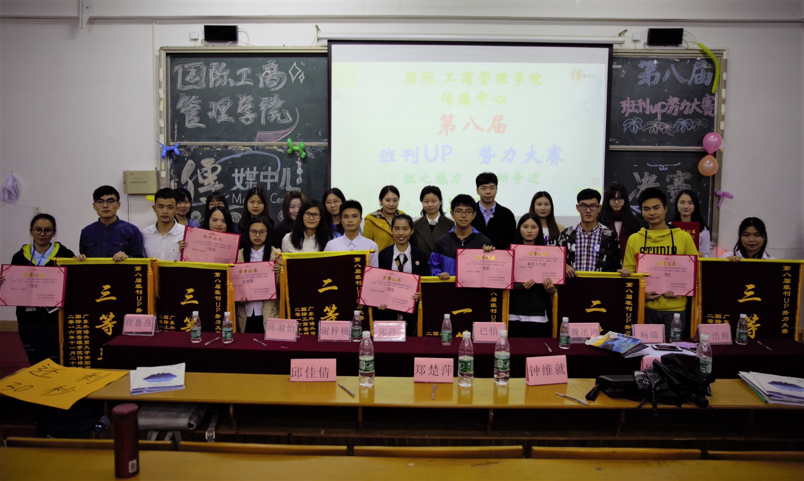 八个班级全部展示完后,郭丹老师总结本次决赛,老师认为,这次比赛对于班集体来说是一个非常好的平台,除了可以对外展示本班,更重要的是可以增进班级的凝聚力,同时也希望同学们在大学里能够找到一份归属感。颁奖环节过后,班刊决赛顺利落下帷幕,获奖班级都在合影留念,现场仍是一片欢乐的气氛。(文 区颖恩 阮景洪 李曦)