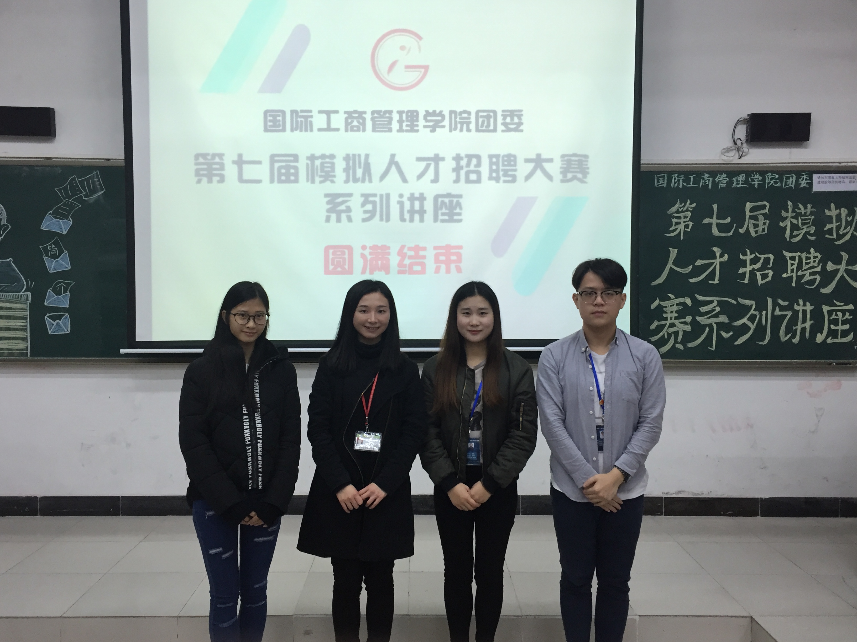 本网讯 3月16日晚7:15,国际工商管理学院团委在G101举办了第七届模拟人才招聘大赛系列讲座,主讲人是学生处招生就业办的陈洁雯老师。出席本次讲座的嘉宾有国际工商管理学院团委书记杨瑞、副书记助理欧宗豪和吴惠文。