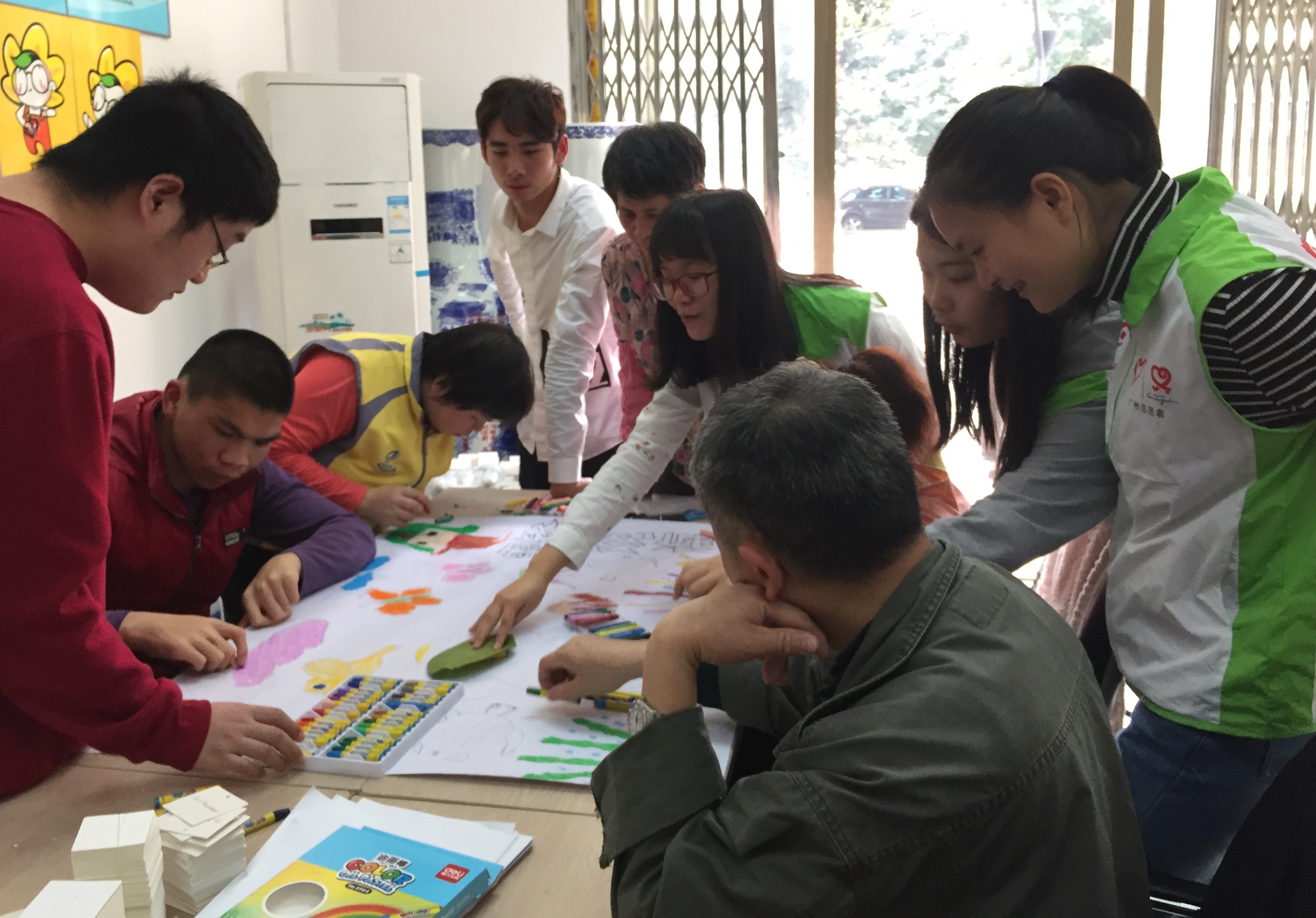 3月23号中午,由管院团委社会实践部组织的志愿者团队踏上了“志愿在康园”志愿服务活动的旅途。当天康园工疗站里有七个特殊人士在等候志愿者,七位学员见到志愿者时脸上都洋溢着笑容并熟络地和志愿者们打招呼。