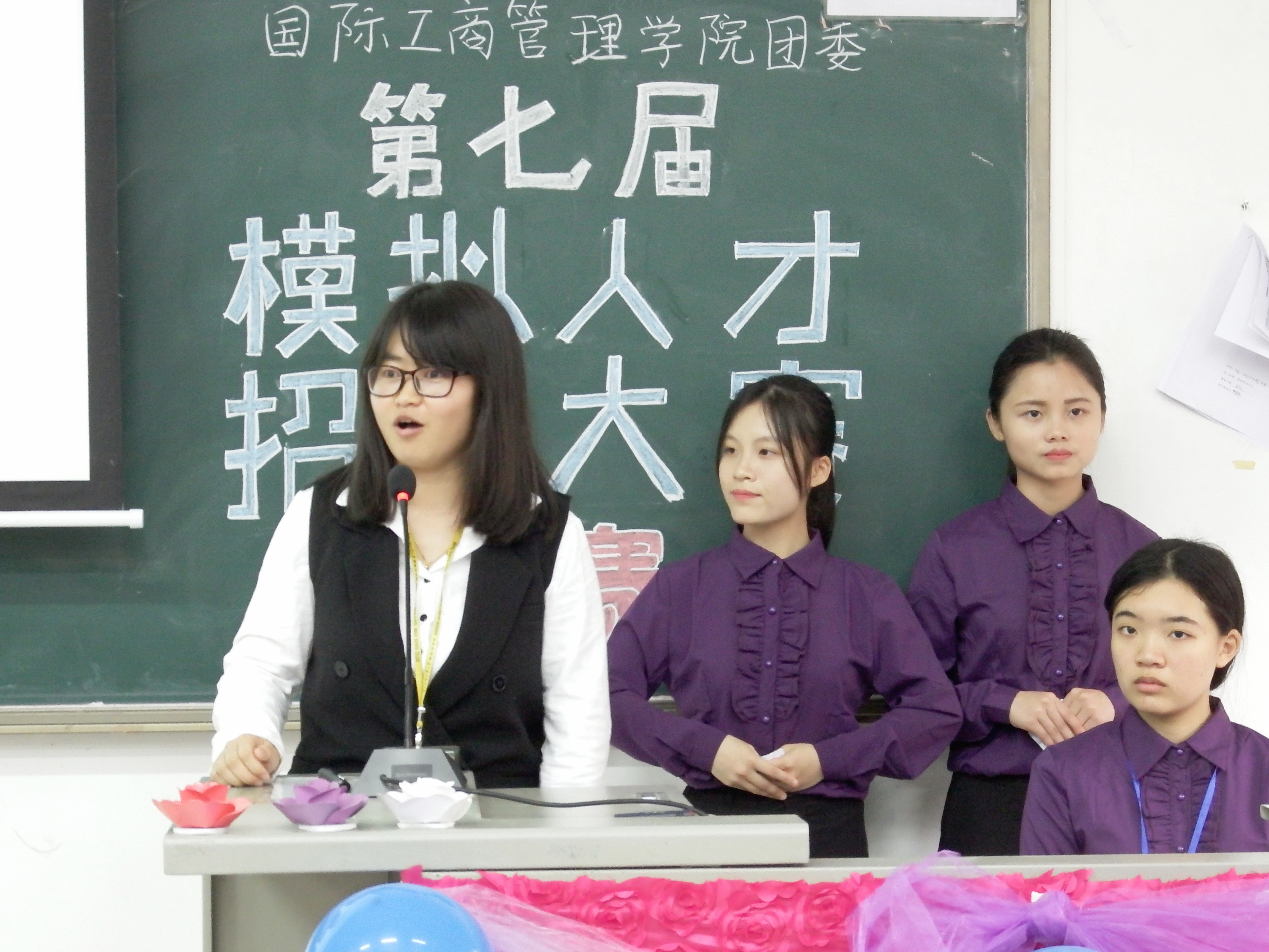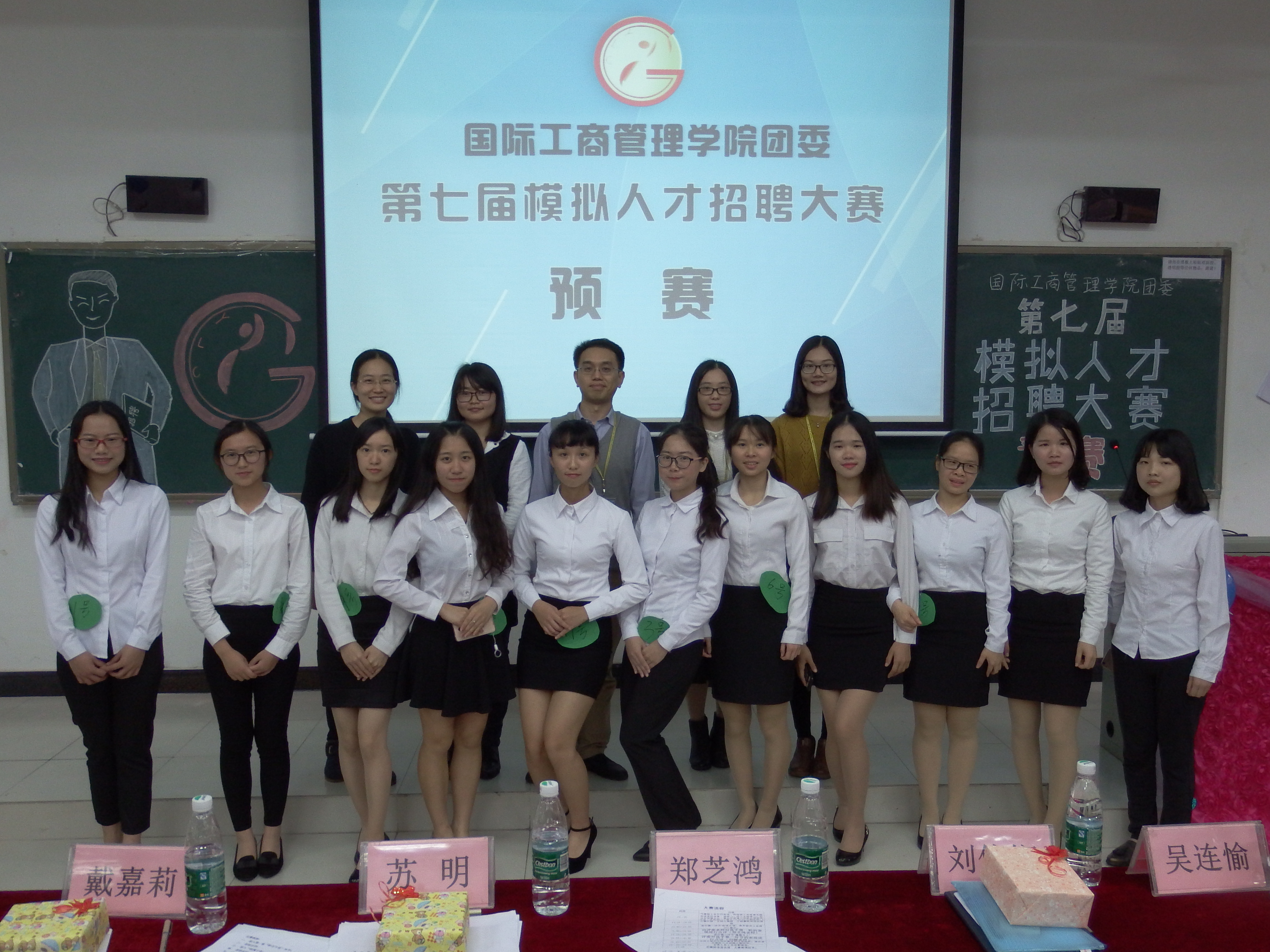 本网讯 2017年3月23日下午,国际工商管理学院团委于G106举办了“第七届模拟人才招聘大赛”复赛。出席本次大赛的评委有学生处处长助理郑芝鸿,国际经济与金融学院第二党支部书记吴连愉,国际工商管理学院会计系主任刘娜,会计系专业老师戴嘉莉,财务管理系专业老师苏明,国际工商管理学院第七党支部书记刘伟娴。此外,莅临本次大赛的嘉宾有校勤工助学中心主席团成员纪家丽,以及我院各兄弟组织的代表。