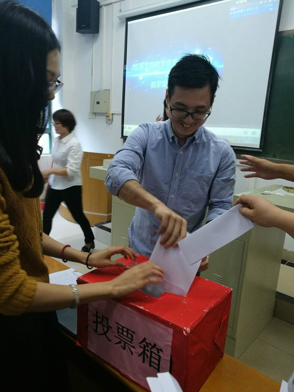 本网讯 11月2日下午,管理学院在D栋教学楼102课室举行第三届“双代会”代表选举大会。全院教职员工参加了此次会议。
