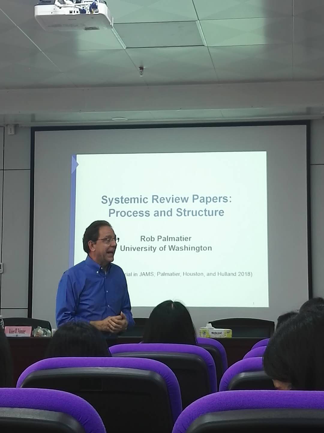 本次报告会邀请的主讲人是来自美国华盛顿大学福斯特商学院市场营销系 Robert W.Palmatier讲席教授,其主要研究领域是关系营销、营销渠道战略。他已在市场营销领域顶级A类期刊发表文章20篇以上,目前担任Journal of the Academy of Marketing Science主编和Journal of Marketing的专业主编。本次交流报告他用一天的时间分三个主题进行演讲:1.《Role of brands and relationships in emerging markets:using loyalty programs for business success》,2.《Designing and implementing an effective research program》,3《Systemic review papers:process and structure》。主题2和主题3 主要围绕如何做好科研,如何撰写综述性论文和如何在国际顶级期刊发表论文等展开介绍,分享的内容对高校教师和博士生都十分实用。会后,我院教师与Robert W.Palmatier教授以及广东财经大学市场营销系教授进行了营销前沿理论的探讨。