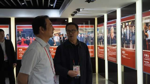 领导一行人在广交会工作人员的接待下,先到达位于A区的广交会发展史陈列馆,工作人员从广交会展馆变迁、展商情况等多方面进行讲解,让领导一行了解广交会的历史进程、对我国经济的深刻意义及国际地位。
