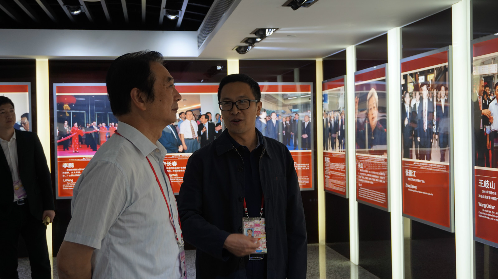 工作人员在为领导讲解广交会历史变迁