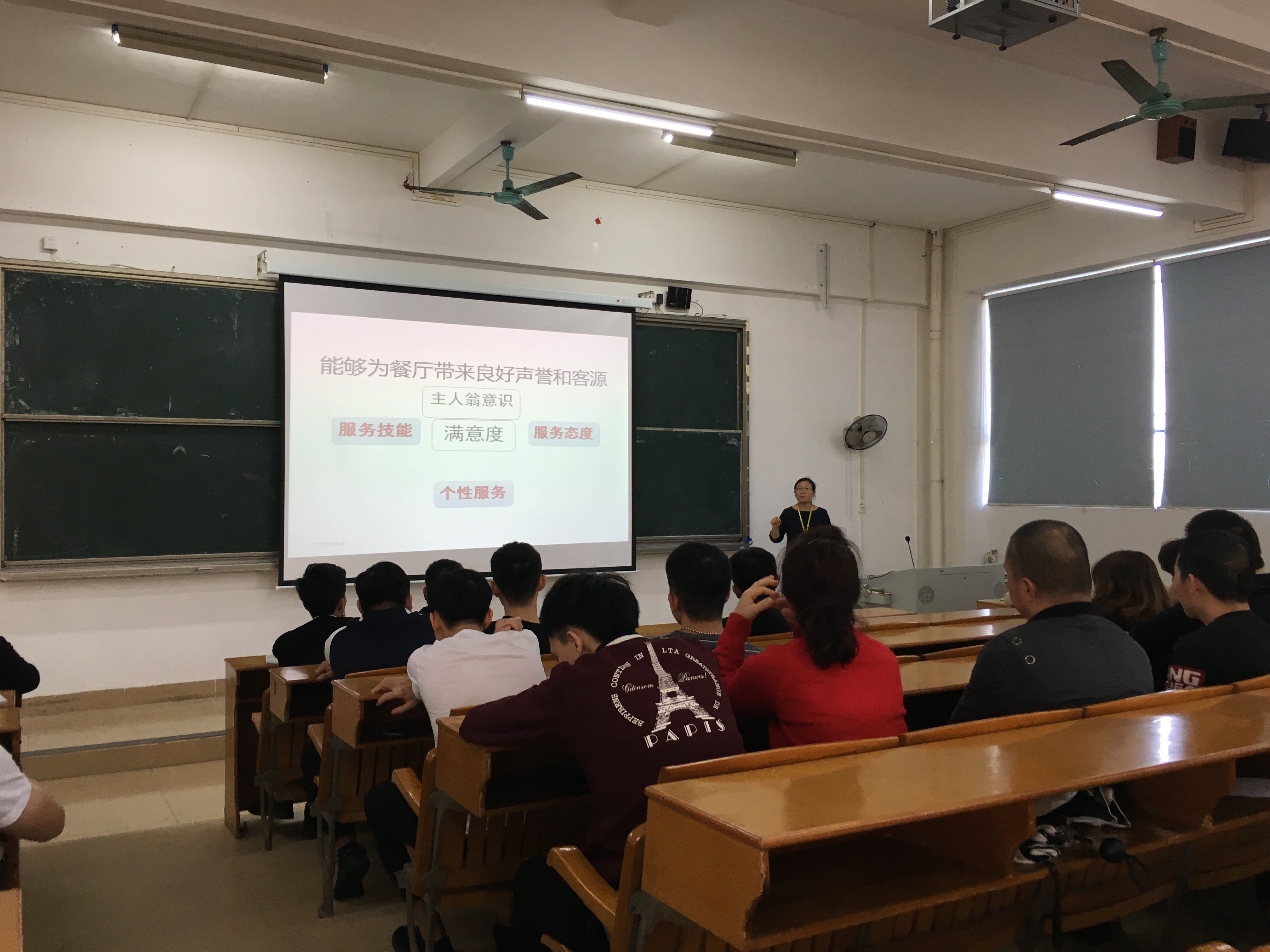 在培训会的开始,张教授以“为什么要打造金牌服务”这一问题进行引入,并强调了餐厅提升员工们服务意识的必要性——提高顾客对餐厅的满意度,从而为餐厅带来良好的声誉与客源。