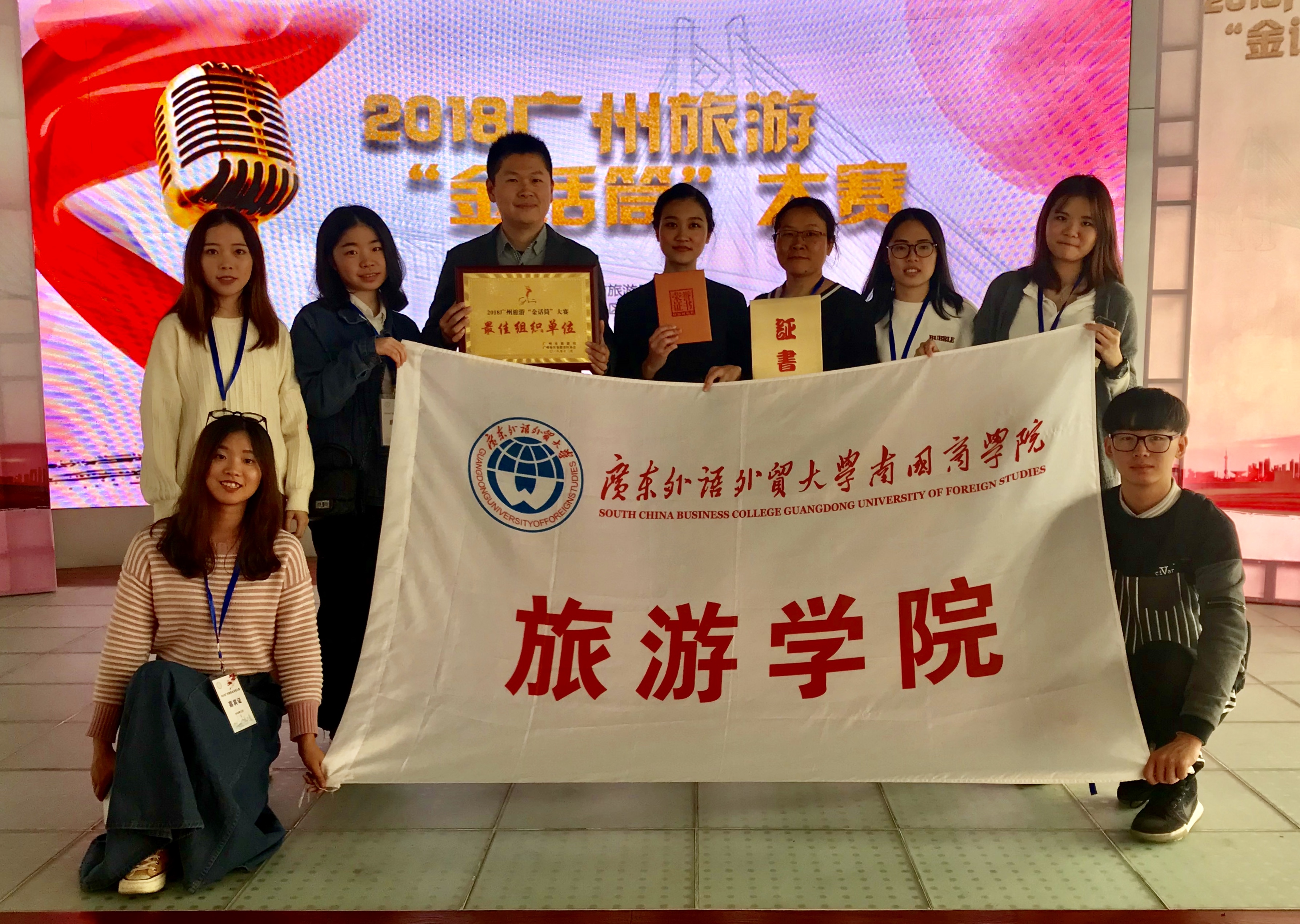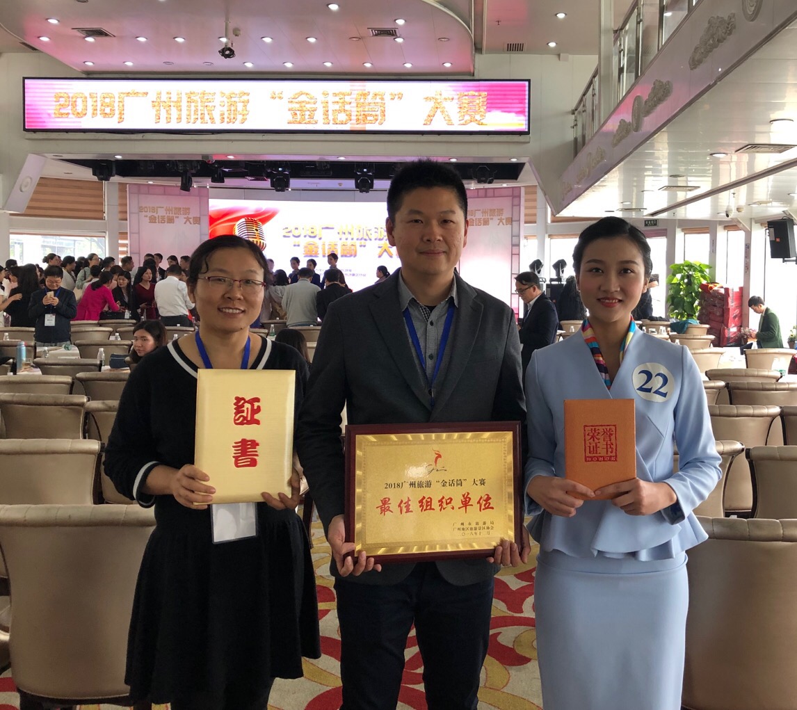 12月20日上午,广州市旅游局主办的2018广州旅游“金话筒”大赛总决赛在大沙头码头的中恒集团号轮船展开。雷竞技官网旅游学院2017级旅游管理钟智兰同学获院校类总成绩第二名,并最终在1200多名选手中脱颖而出,斩获“广州市十佳旅游形象宣传大使”称号,旅游管理系主任张海燕副教授获“最佳指导老师”奖,雷竞技ray官方网站平台获“最佳组织单位”称号。