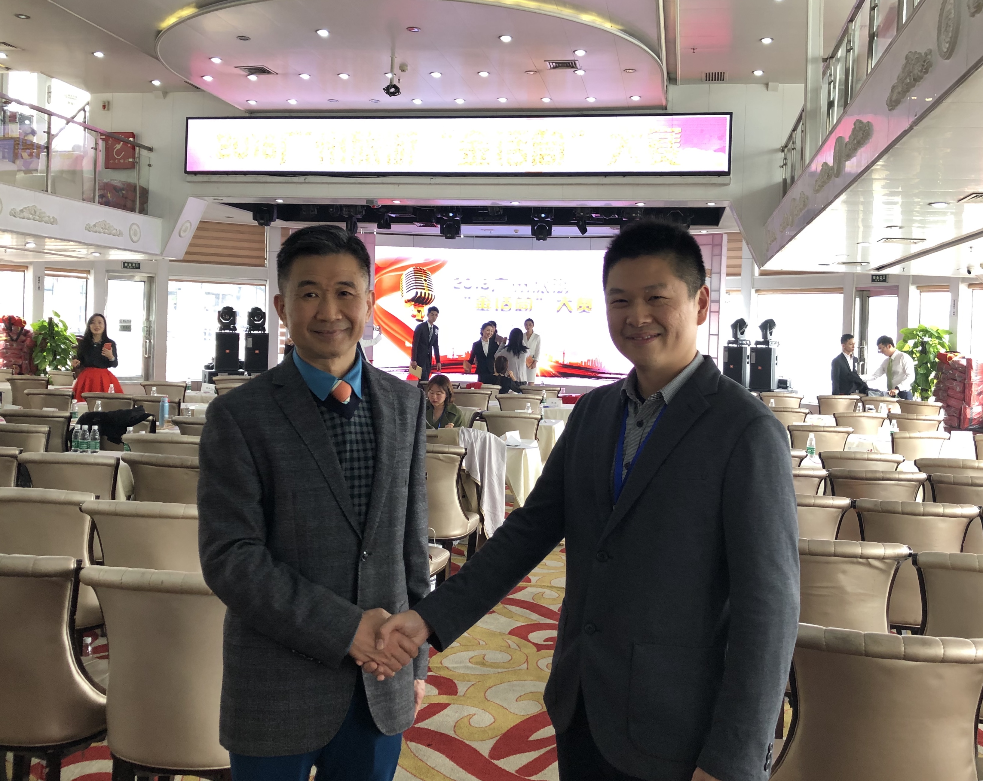 赛后,副院长陈书星教授与广州市旅游局行业培训指导处处长江桃基对如何提高比赛选手水平和如何更进一步开展行业、企业与学校协同育人进行了交流。