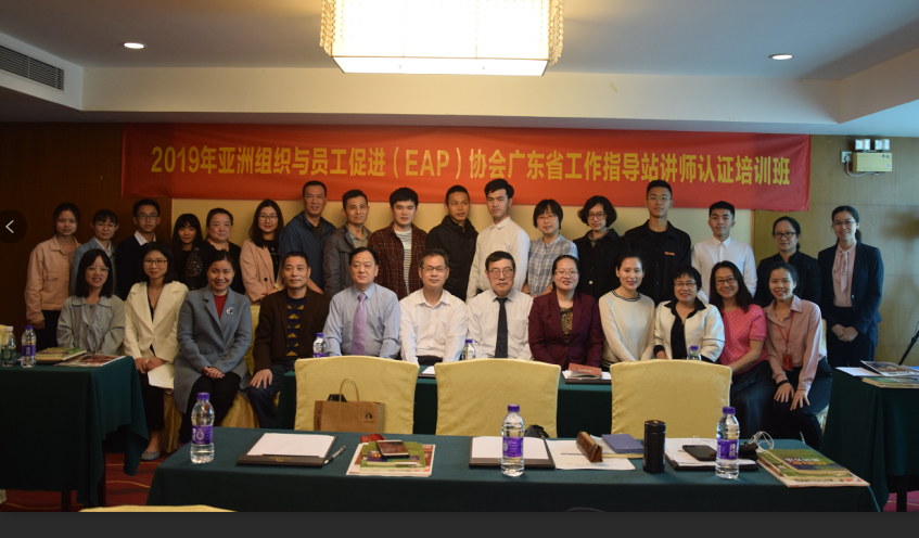 2019年4月13-14日,雷竞技ray官方网站平台管理学院学生在熊匡汉副校长、罗光丽副教授的带领下,雷竞技官网学生代表刘雅慧、曾倩、邱伟钦、刘浩天、马俊豪、邱敏娜、袁伟杰同学参加了关于2019粤港澳大湾区组织发展与员工心理健康(EAP)峰会与2019亚洲组织与员工促进(EAP)协会广东省工作指导站讲师认证培训班,并获得了亚洲组织与员工促进(EAP)协会EAP基础教育培训项目的结业证书。