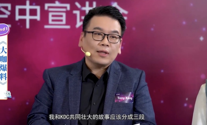 毕马威高级合伙人Tony分享了与KDC共同壮大的故事,这个故事分成三段,第一是KDC的服务,第二是KDC的中心,第三是KDC的人数。从服务的角度是从2013年开始,在设计中心的时候,他们有好几个主要核心,如:如何提高KDC服务质量和提升KDC的效率与优化内部流程。从中心来说,有佛山的第一个,及南京后来新增了一个服务中心和科研中心,这两个中心把KDC的服务提升得更好。从人数来看,最早只有Tony和Cherry到现在的2500人。