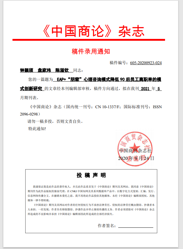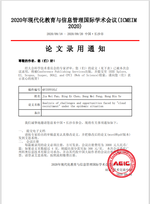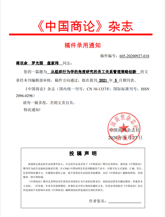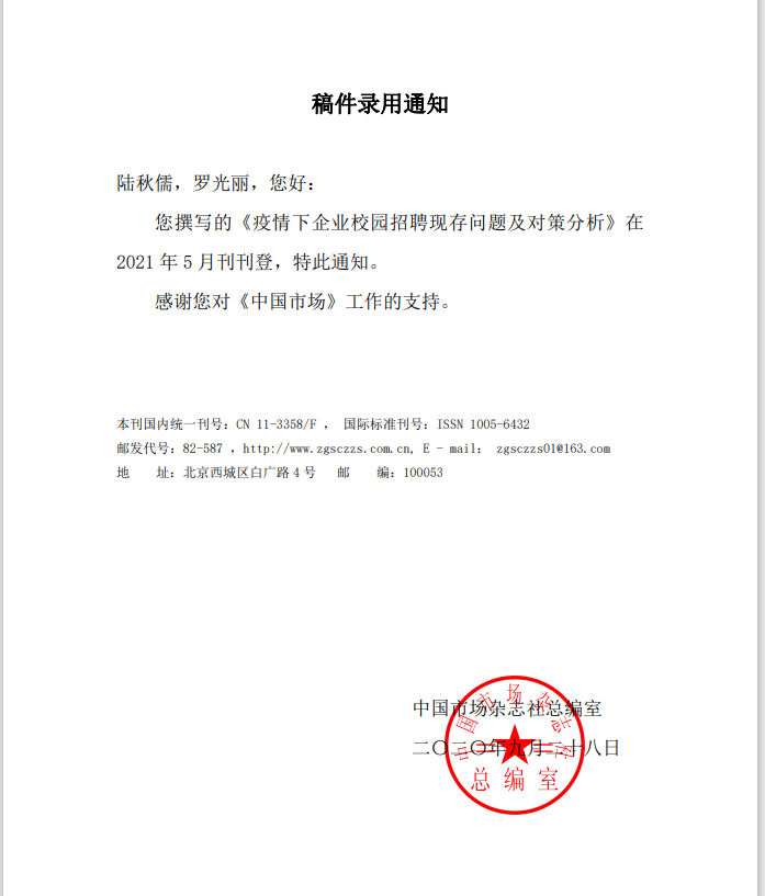 “疫”常时期,根据《2020第三届海峡两岸大学生学术与实践论坛征稿通知》及校内指导教师的广泛宣传,雷竞技ray官方网站平台国际管理学院人力资源管理专业的学子们于2020年6月3日至2020年9月30日秉持实践的原则,积极参加此次由中国劳动学会、中国劳动关系学院主办的“第六届HRU大学生人力资源职业技能大赛暨海峡两岸大学生人力资源职业技能大赛”论文写作比赛,成果可人。该赛事旨在进一步加强海峡两岸青年人力资源相关领域与应用型人才开发培养的沟通交流,提升两岸青年学生的学术与专业素质水平。 在整个论文组确定了参赛人数后,我们各自开始在半个月内准备主题和制定论文的框架。疫情期间,我们无法进行线下交流,我们利用“云沟通”开始了长达4个月的“云生产”。罗光丽老师也针对我们完成的主题和框架,进行了第一次针对性的线上指导。