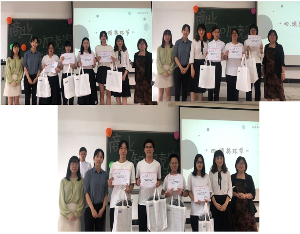 5月27日下午,于F栋503教室举行了商业知识竞赛决赛。出席本次决赛的嘉宾有毕马威审计部经理林瑞妙女士、毕马威人力资源部助理李绮勤女士、管理学院会计系副主任李玉平老师和知识竞赛指导赖晓然老师。经过线上商业知识测试的选拔后,有三支队伍脱颖而出进入最终的决赛。决赛主要分为四个环节,分别是队伍PPT展示、评委点评、互动交流以及颁奖合影。
