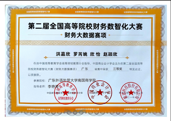 我院会计系首次参赛,比赛由李艳琴指导,洪嘉欣、罗芮、姚欣怡、赵颖欣四名同学代表学校参赛,荣获广东省三等奖。